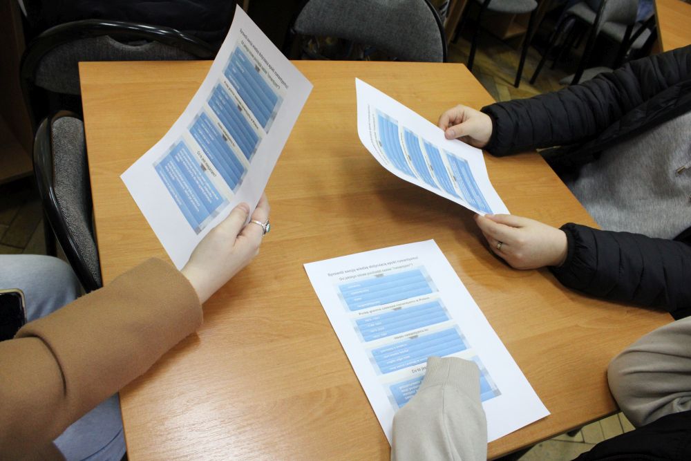 W warsztatach wzięło udział 12 osób, naszą szkołę reprezentowały uczennice z klasy II TG, wraz z opiekunem Anitą Sawicką.. Zajęcia poprowadziły: Magdalena Pawelec i Natalia Leszczyńska z Młodzieżowego Domu Kultury