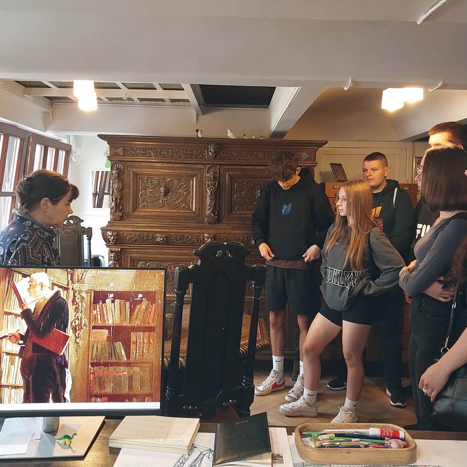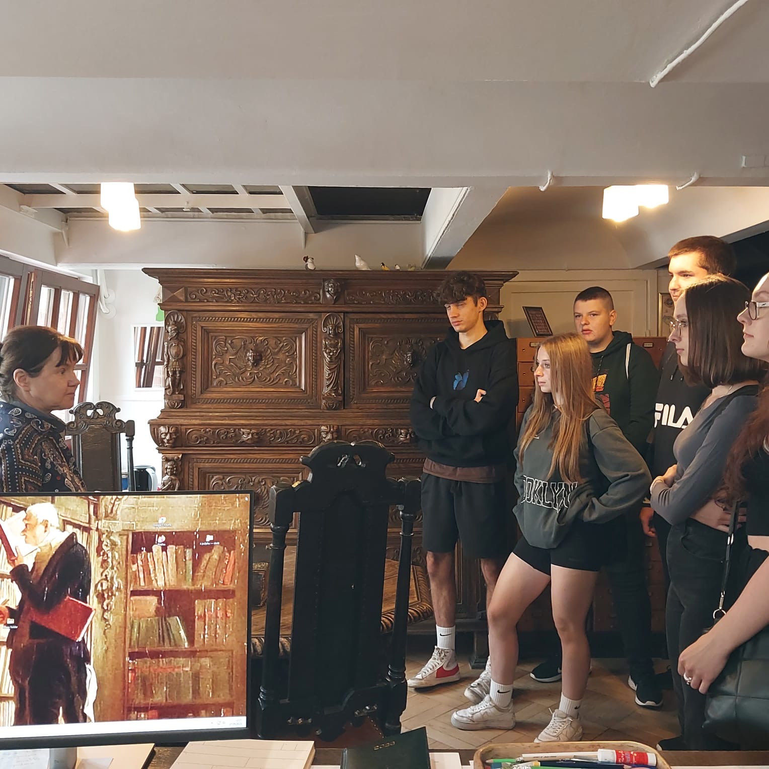 27 września 2023 r. klasa 2TI wraz z wychowawczynią panią Ewą Brzostek-Wardal oraz panią Magdaleną Drobik odwiedziła Archiwum Państwowe w Szczecinie. Podczas spotkania z pracownikami uczniowie zapoznali się z rolą i znaczeniem archiwum państwowego w czasach historycznych i obecnie. Dowiedzieli się także, jak działają archiwa państwowe i jakie są ich zasoby w internetowym świecie. Uczniowie mieli także możliwość doświadczenia, na czym polega konserwacja starych druków oraz zwiedzenia magazynów, biblioteki i pracowni. Wszyscy wzbogacili swoją wiedzę o nowe ciekawe informacje i umiejętności.
