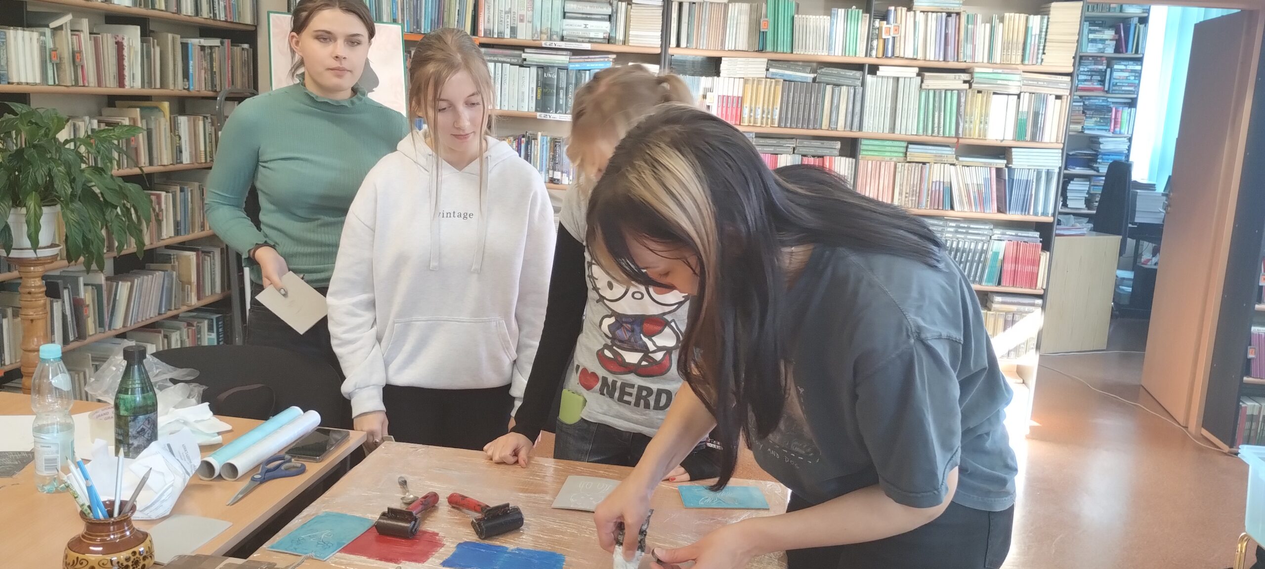 Zajęcia były bardzo twórcze. Uczestnicy przeszli wspólnie przez proces od pomysłu do projektu, a następnie wykonali ekslibrisy.
