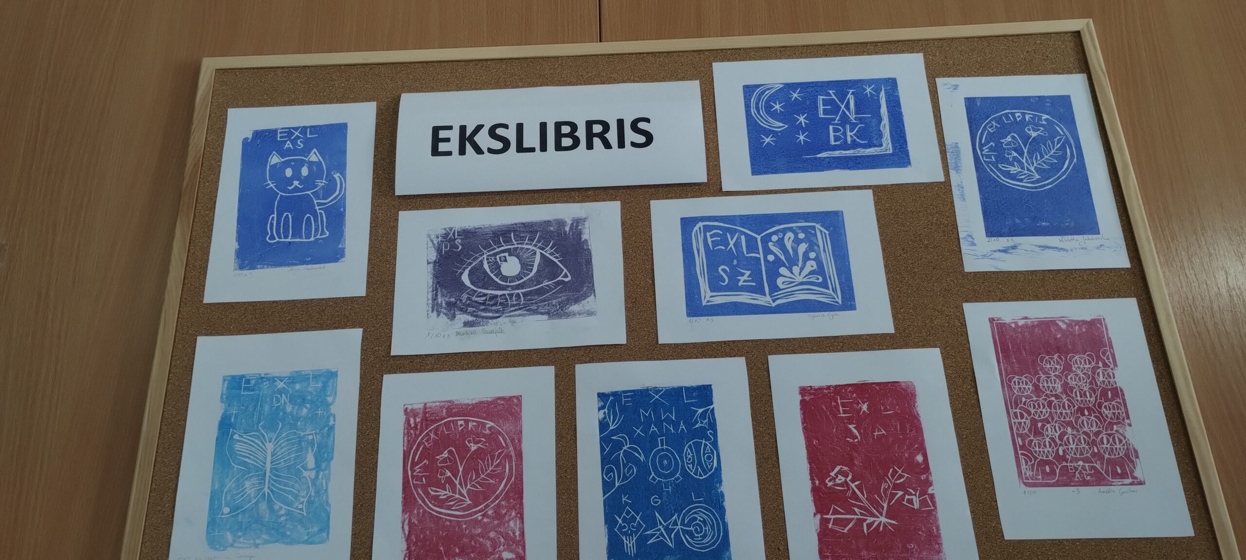 i wykonali dłutem odpowiednie wyżłobienia. W końcowej fazie wykonali grafiki/ekslibrisy przy użyciu farby drukarskiej i stworzyli oryginalne dzieła sztuki.
