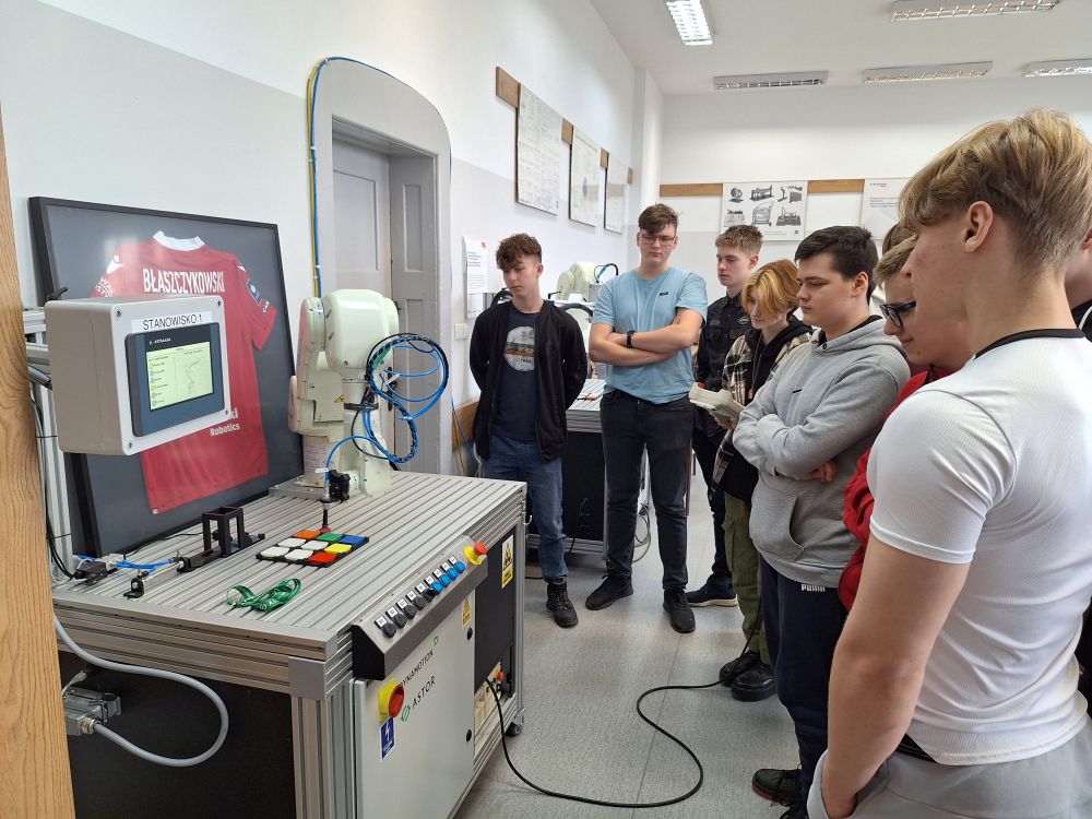 Technicy robotycy zyskali nowe narzędzia pracy- doposażenie pracowni robotyki poprzez zakup robotów przemysłowych Kawasaki Robotics wraz ze stołami roboczymi oraz sterownikami PLC ze zintegrowanymi panelami HMI oraz oprzyrządowaniem przystosowanym do wykonywania aplikacji typu pick & place. Jest to zaawansowany technologicznie sprzęt, który używany jest przez uczniów do rozwoju ich kompetencji zawodowych poprzez wykonywanie ćwiczeń oraz przygotowanie ich do egzaminu w zawodzie technik robotyk.