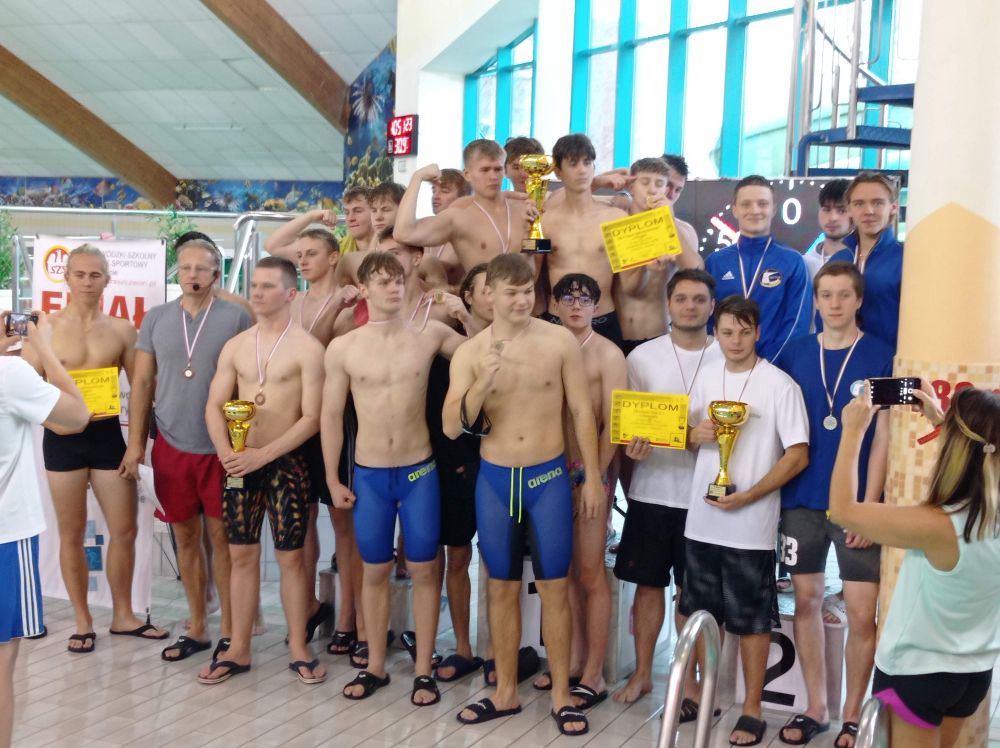 W dniu 8 listopada 2023 roku, na pływalni kompleksu sportowego „Milenium” w Kołobrzegu, odbył się Finał Wojewódzkiej Licealiady w Pływaniu Drużynowym Chłopców. Naszą szkołę – Zespół Szkół nr 1 i Powiat Stargardzki, pod opieką pana Grzegorza Kunickiego reprezentowali: Kacper Frymarkiewicz, Igor Stodolski, Mateusz Olczak, Filip Gut, Bartłomiej Pialik i Wojciech Malko. W tym składzie chłopcy udowodnili, że są najlepszą sztafetą w naszym województwie , pewnie wygrywając konkurencję 6 x 50 m. stylem dowolnym. W klasyfikacji ogólnej, po konkurencjach indywidualnych i wyścigu sztafetowym nasi reprezentanci wywalczyli tytuł Wicemistrzów Województwa Zachodniopomorskiego w Pływaniu drużynowym chłopców, przegrywając tylko czterema punktami z drużyną z Koszalina. Serdecznie gratulujemy naszym pływakom wyników, sportowej postawy i walki do ostatnich metrów! BRAWO!!!