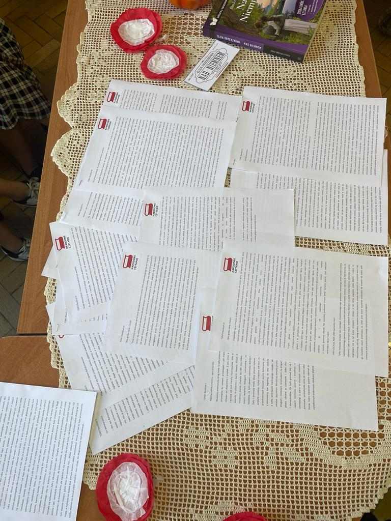 Przyjemnej zabawie czytelniczej towarzyszył klimat nawiązujący do tej wiejskiej epopei: pachnące polne kwiaty, tematyczne gadżety, patriotyczne akcenty. Spotkanie poprowadziły uczennice klasy 2 TG: Natalia Dragun oraz Wiktoria Wal. Na zakończenie uroczystości każdy uczeń otrzymał piernika z mottem zaczerpniętym z lektury. Tak więc:
