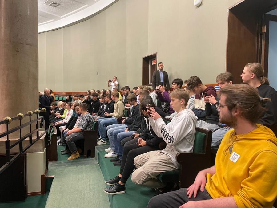 Zwiedzanie Sejmu z przewodnikiem rozpoczęło się przejściem podziemnym korytarzem, gdzie prezentowana była wystawa dotycząca sejmowania w okresie I Rzeczpospolitej, a także makieta współczesnego kompleksu budynków sejmowych. Przy makiecie przewodnik omówił wszystkie budynki Sejmu. Przypomniał historię polskiego parlamentaryzmu, a także opowiedział o pracy posłów i senatorów. Następnie udaliśmy się do Sali Posiedzeń Sejmu, gdzie z galerii dla publiczności, można było zobaczyć miejsce Marszałka Sejmu, wicemarszałków, posłów z poszczególnych partii politycznych oraz rządu. Uczniowie mogli zobaczyć miejsce prezydenta gdy obserwuje obrady oraz miejsce, w którym zasiada, gdy przemawia w Sejmie. W Sali Posiedzeń Sejmu towarzyszył nam poseł Grzegorz Napieralski, który z niezwykłą serdecznością opowiadał o swojej pracy, a także udzielał odpowiedzi na pytania uczniów.