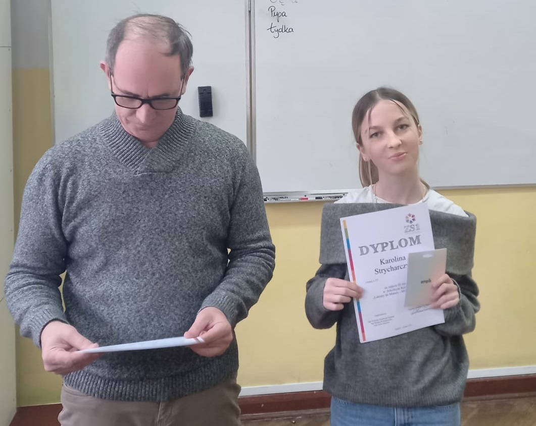 06.12.2023r. odbyła się IV edycja Szkolnego Konkursu Języka Niemieckiego „Łamigłówki po niemiecku”, którego organizatorem była Anna Dubis. Zadania konkursowe polegały m.in. na ułożeniu wyrazów z sylab, połączeniu zdań w pary powiązane znaczeniowo, odgadnięciu brakujących wyrazów. Zwycięzcą konkursu został Nikodem Czechowski z klasy 1TM.
