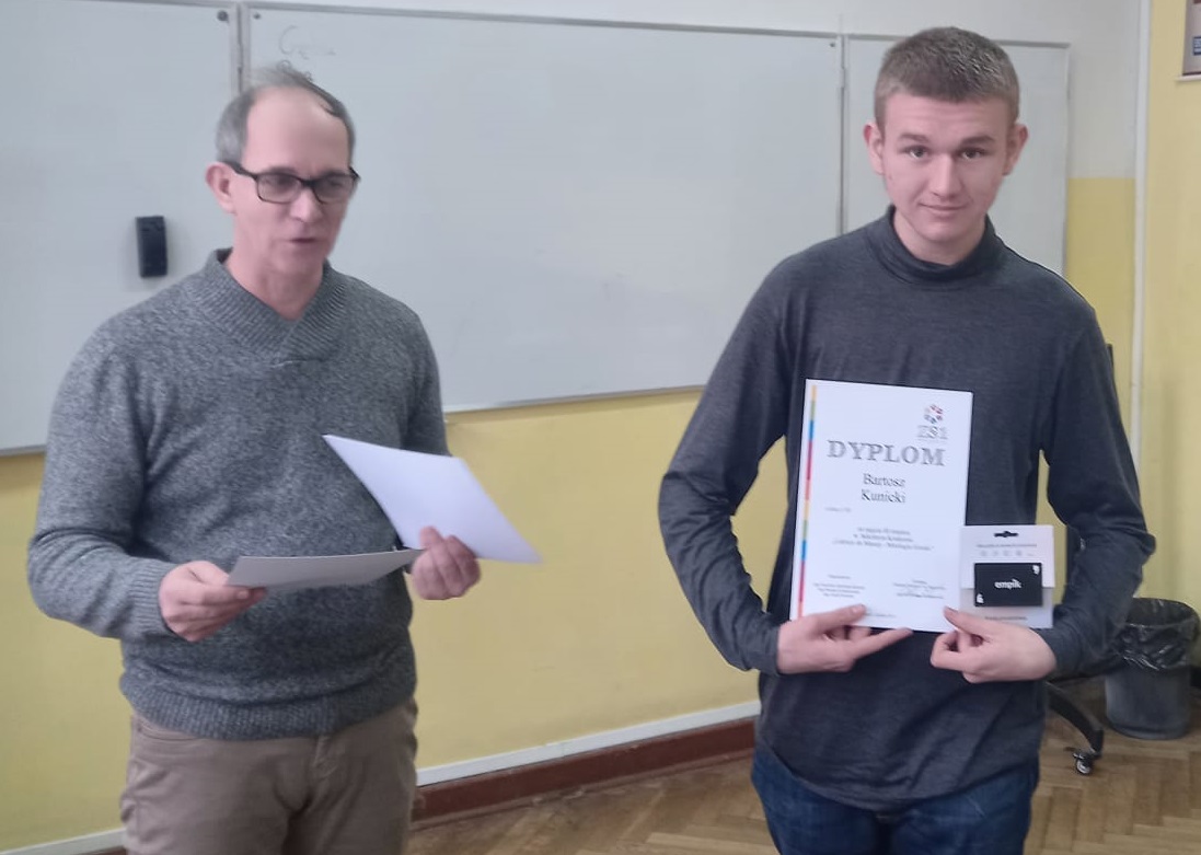 Uczniowie technikum mechatronicznego Dawid Bojczuk klIV i Kamil Wolański klV zakwalifikowali się do drugiego etapu Olimpiady Wiedzy Technicznej. Etap wojewódzki odbędzie się w styczniu. Uczestnikom życzymy powodzenia.