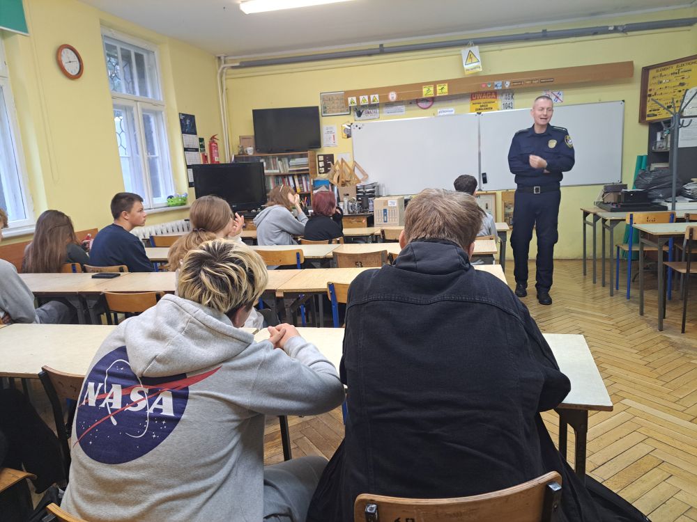 Od 2 do 6 października 2023r. uczniowie klas pierwszych uczestniczyli w spotkaniach z przedstawicielem Straży Miejskiej w Stargardzie, Panem Marcinem Siekiem.