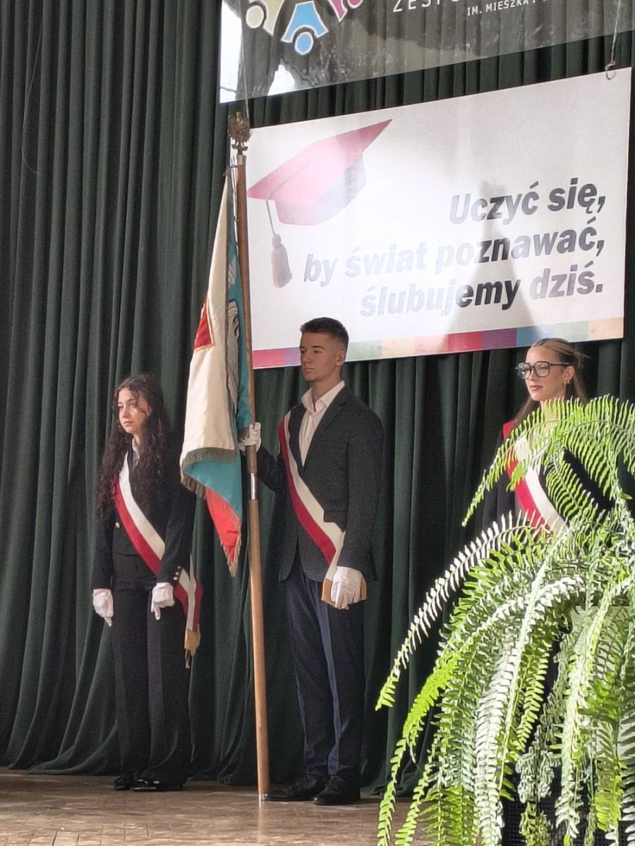 Dnia 10 października 2025 r. po raz kolejny odbyło się uroczyste ślubowanie klas pierwszych. Na uroczystość wyjątkowo przyniesiono “kota w worku”. Ponieważ “nasze koty pierwszaki” miały zostać tradycyjnie wcielone do braci uczniowskiej, “kot z worka” złożył przyrzeczenie: