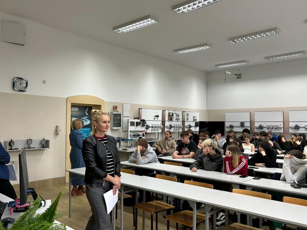 Uczniowie dowiedzieli się również, jak wygląda proces poszukiwania pracy, co go utrudnia i jakie są aktualne możliwości zatrudnienia w regionie oraz jak planować ścieżkę kariery zawodowej po ukończeniu szkoły.