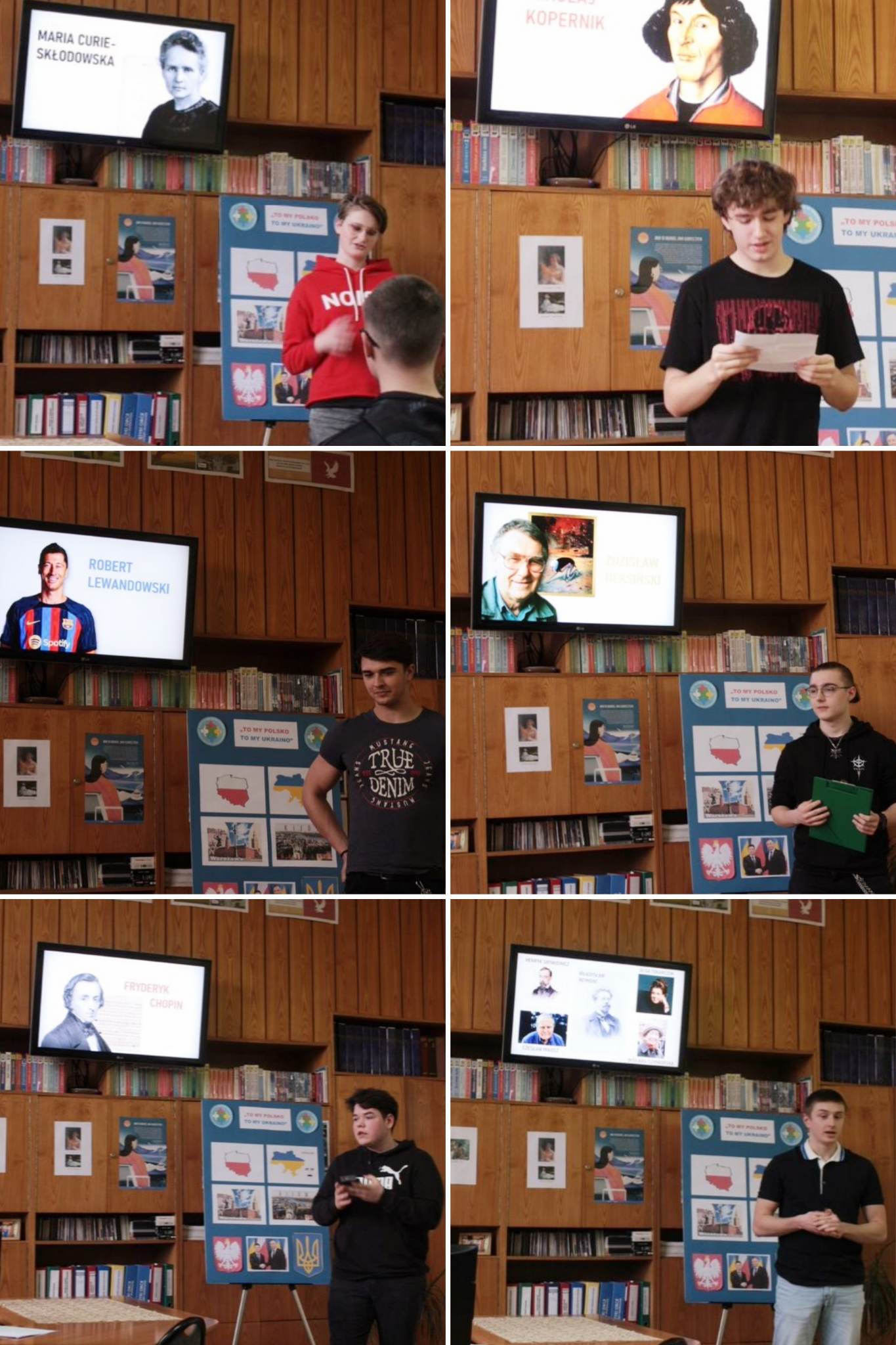 Tematem tej części projektu było hasło: Poznajemy słynne postacie z Polski i Ukrainy. Prezentacje przygotowali i zaprezentowali uczniowie: Bohdan Nazarchuk, kl. 1TM, Sofia Ivankowa, kl.1 TGI, Yaryna Stanhryt, kl. 3TT, Marta Motyl, kl.3TI, Szymon Gontarz, kl. 4TH, Kamil Wolański, kl.4TH, Jakub Wieczorek, kl. 4TH, Szymon Jaworski, kl. 4TI, Mateusz Gapiński, kl. 4TI