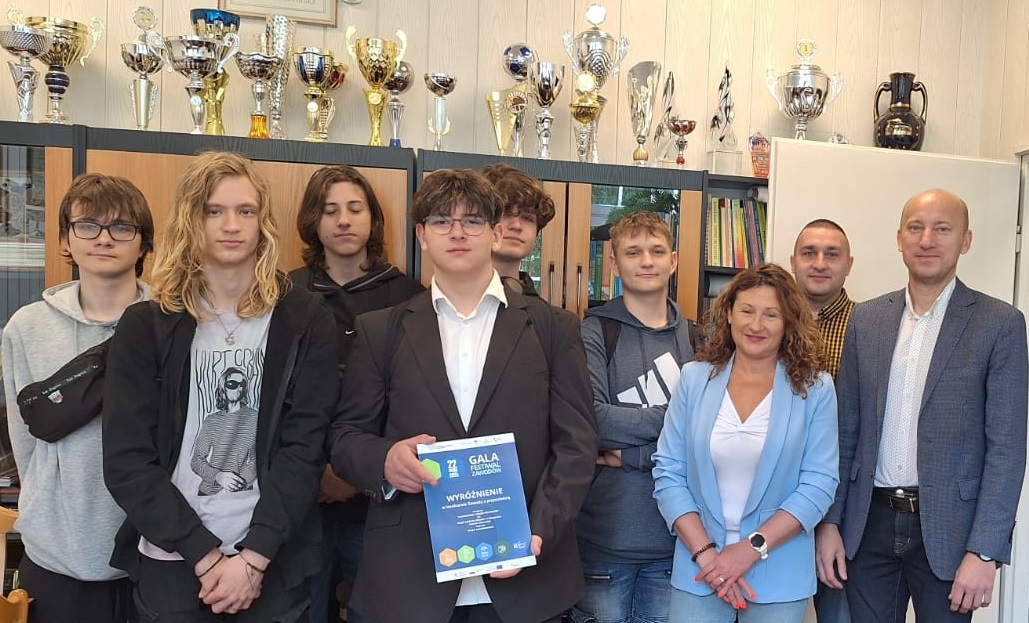 Podczas Gali odbyło się uroczyste wręczenie nagród dla najlepszych zespołów. Nasi uczniowie z klasy 2TI: Oskar Zwolak, Wojciech Niemiec, Maksym Urban, Szymon Stanisławski, Szymon Lewandowski, Michał Rozmarynowski i Jakub Pacanowski otrzymali wyróżnienie w kategorii „Technologie i Usługi Przyszłości”.