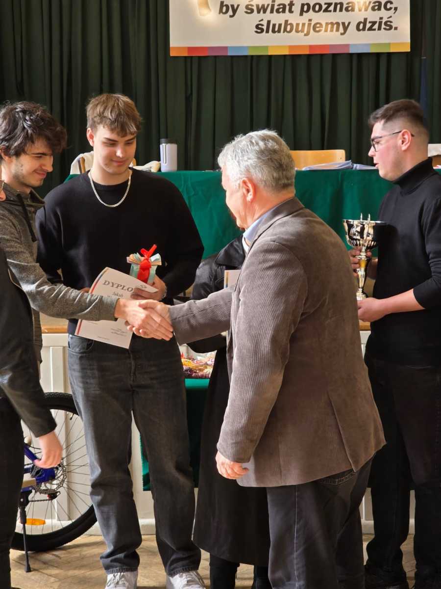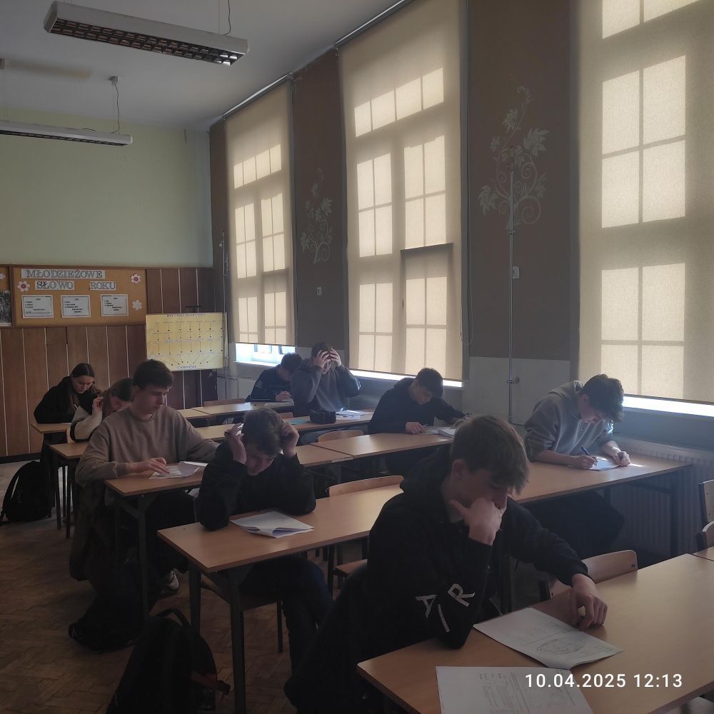 Dnia 10 kwietnia 2025 roku odbył się konkurs geograficzny sprawdzający znajomość obiektów na mapie fizycznej świata. Z zadaniami zmagało się 28 uczniów klas pierwszych i drugich. Wśród uczniów klas pierwszych najlepszy wynik uzyskał Michał Flasiński klasa ITEL. W klasach drugich pierwsze miejsce zajął Patryk de Weyher klasa II TR.