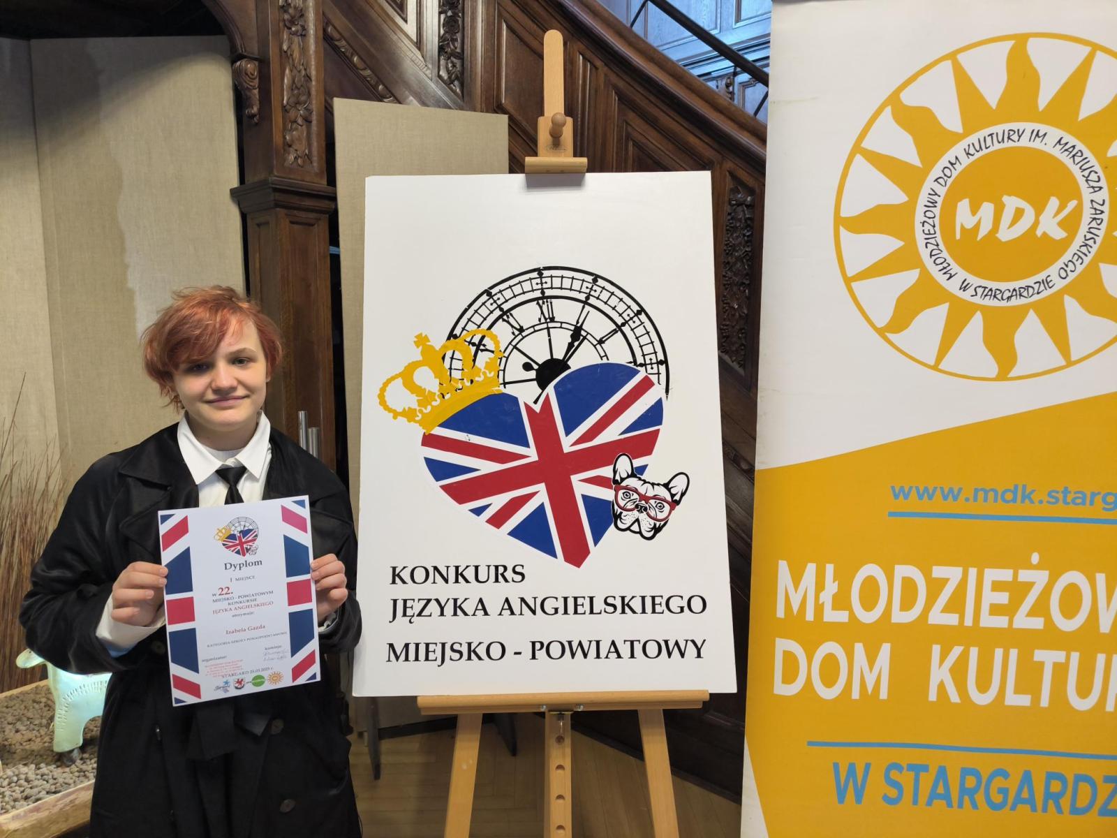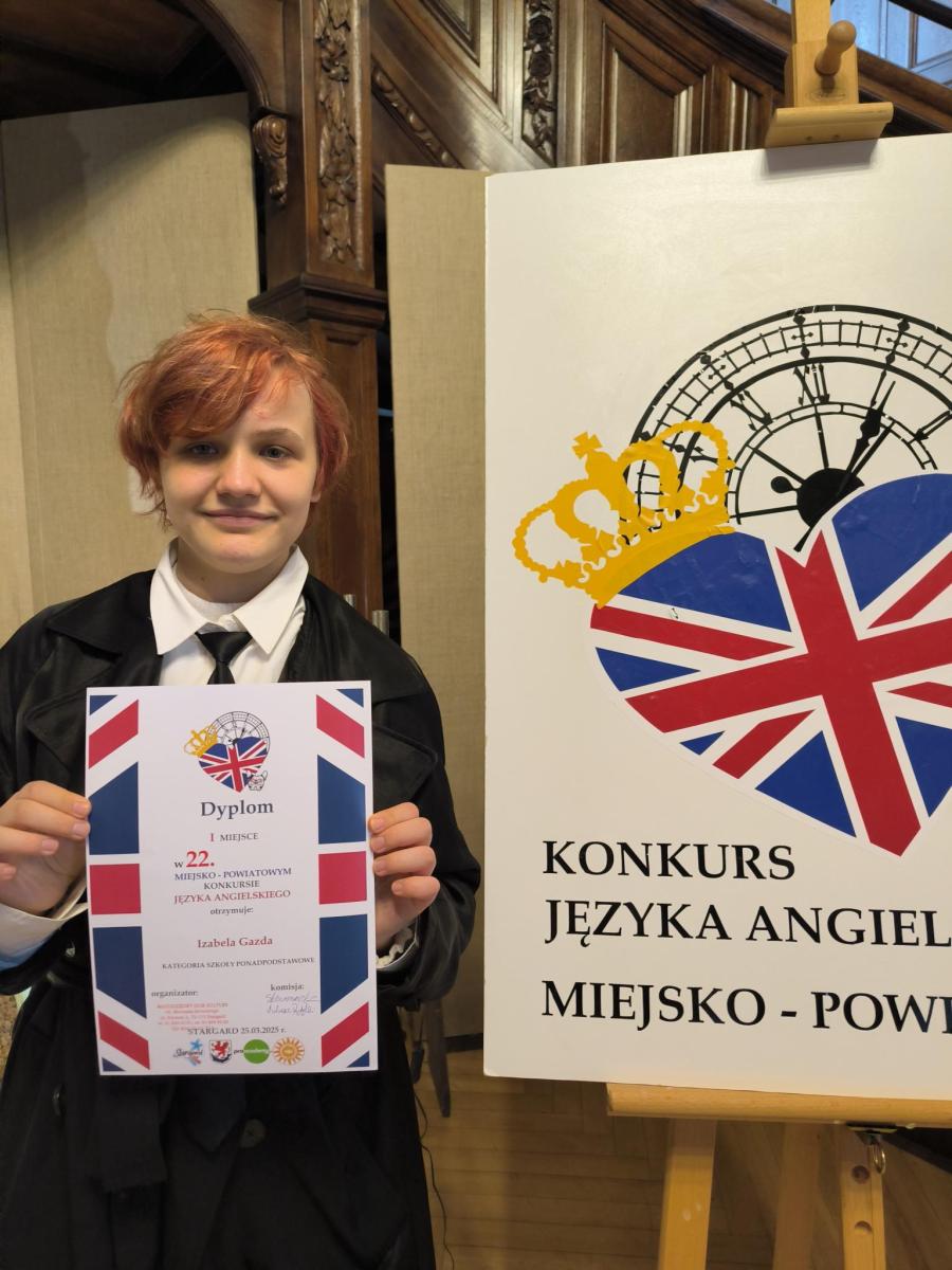 Uczennica klasy 5TH Izabela Gazda zajęła I miejsce w 22. Miejsko- Powiatowym Konkursie Języka Angielskiego, który odbył się 25.03.2025r. w Miejskim Domu Kultury. Serdeczne gratulacje!