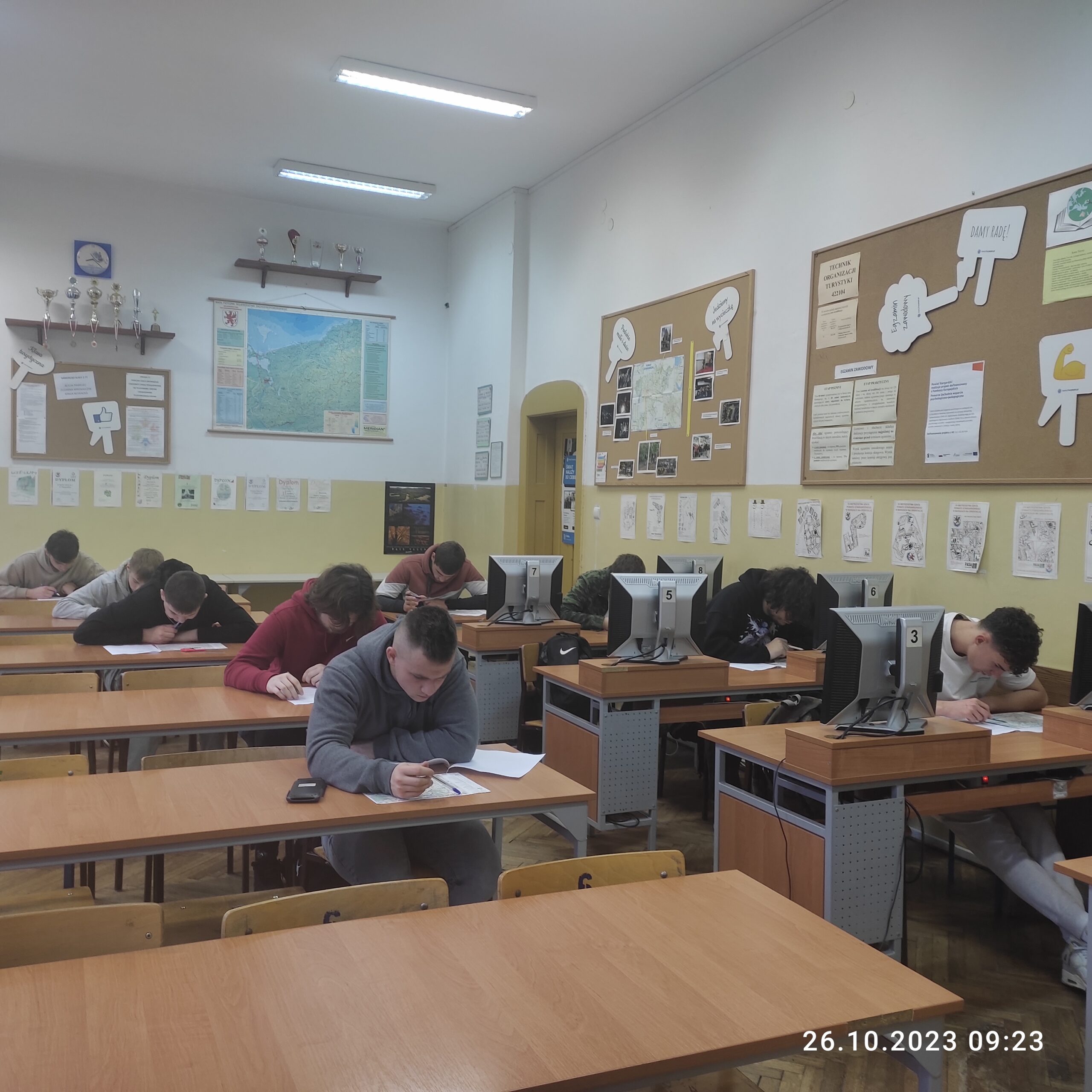 W dniu 26.10.2023r. w ramach przygotowań do egzaminu maturalnego odbył się szkolny konkurs geograficzny sprawdzający umiejętność odczytywania informacji z mapy topograficznej. Najlepiej arkusz konkursowy rozwiązał uczeń klasy 5TM Dominik Kozdroń. Drugie miejsce zajął Maksymilian Wojciechów z klasy 5 TD, a 3 miejsce zdobyła Emilia Hryniuk z klasy 5TT.