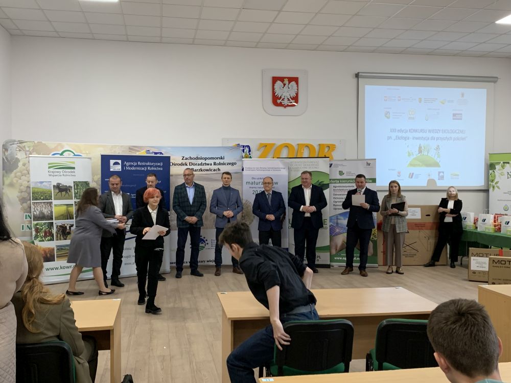 24 listopada w Barzkowicach odbył się finał XXII Ekologicznego Konkursu Wojewódzkiego pod hasłem :„ Ekologia- Inwestycja dla przyszłych pokoleń”. W konkursie wzięło udział 19 szkół średnich z 2 województw: zachodniopomorskiego i lubuskiego. Łącznie w finale rywalizowało między sobą aż 40 osób. Naszą szkołę reprezentowali: Izabella Gazda i Jakub Jeske ( zwycięzcy eliminacji szkolnych). Pierwsza część konkursu odbyła się w formie testu pisemnego, 8 osób z najwyższą punktacją – w tym uczeń naszej szkoły Jakub Jeske przeszło do finału, który odbył się w formie ustnej.