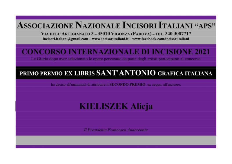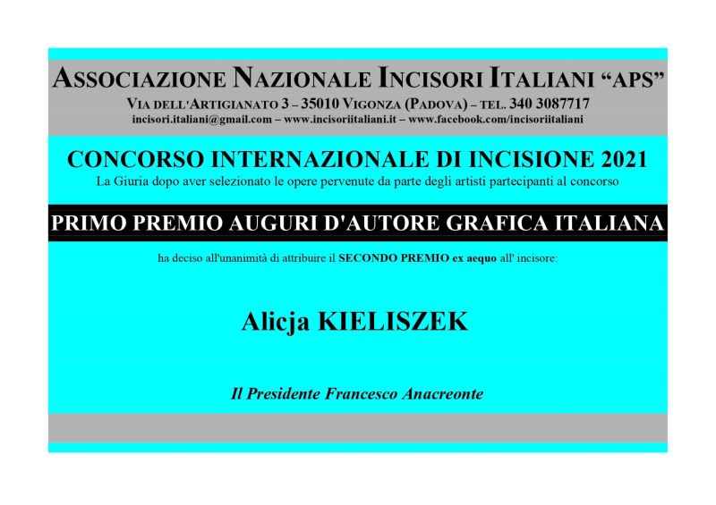 Uczennica naszej szkoły Joanna Ciećko z profilu technik grafiki i poligrafii cyfrowej, zdobyła II miejsce w konkursie międzynarodowym na grafikę artystyczną, organizowanym przez Associazione Nazionale Incisori Italiani aps. GRATULUJEMY! Warto spełniać marzenia