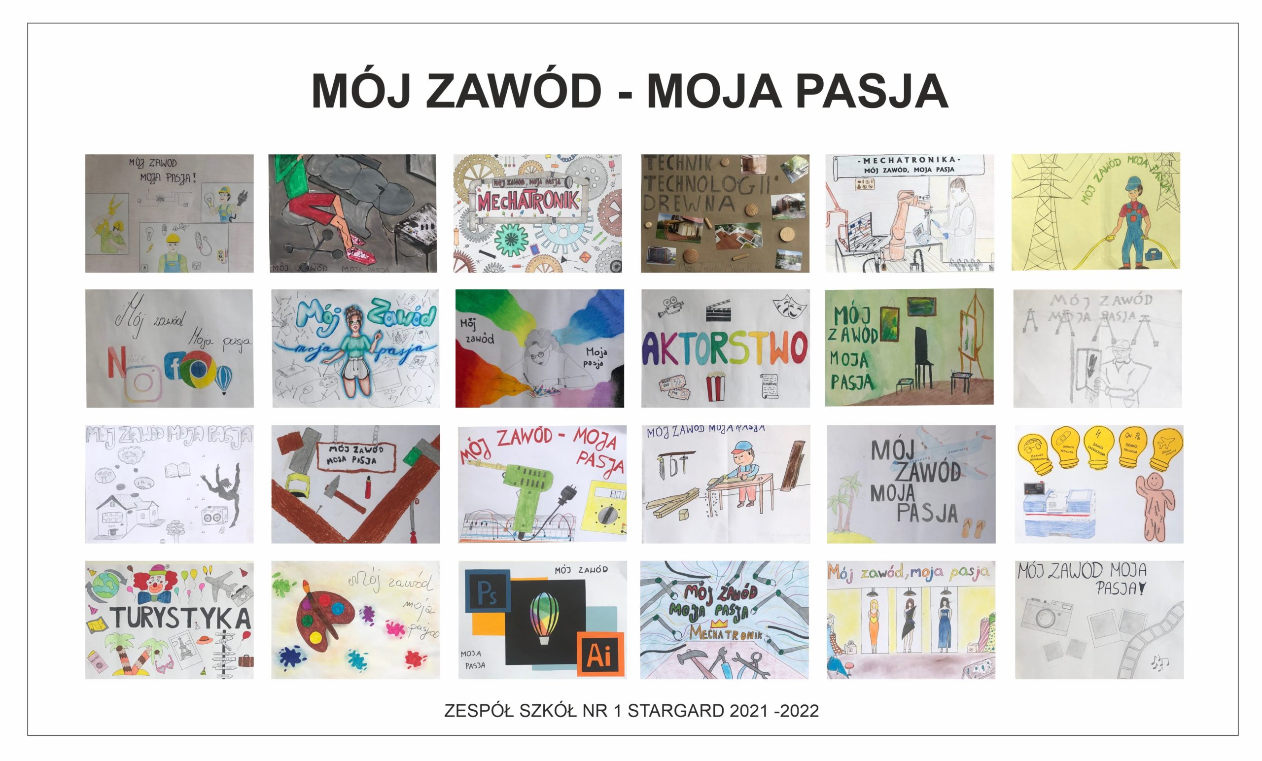 Laureaci przedstawili interesujące spojrzenie na wybrany przez siebie przyszły zawód zgodny z ich zamiłowaniem i pasją. Prace wykonane zostały w formacie A3 w dowolnej technice: ołówek, rysunek kredkami, pastele suche, olejne, wyklejanki, collage itp.