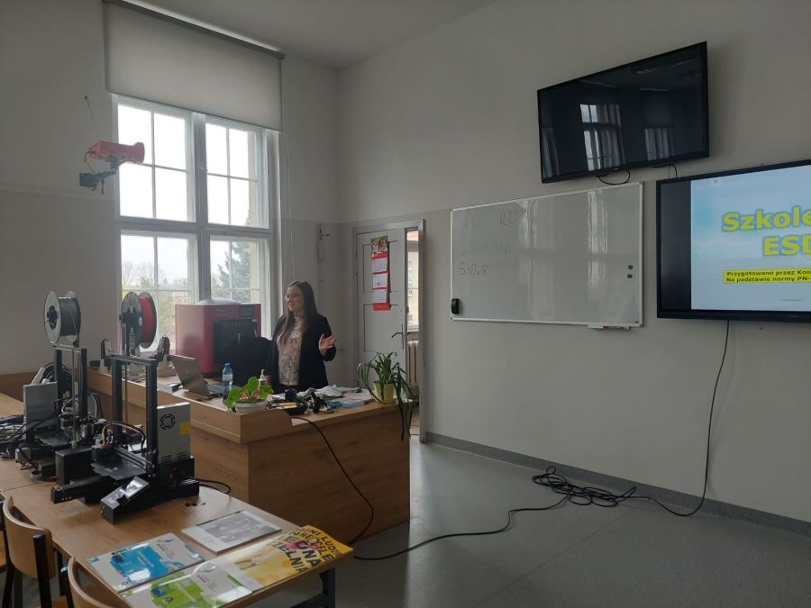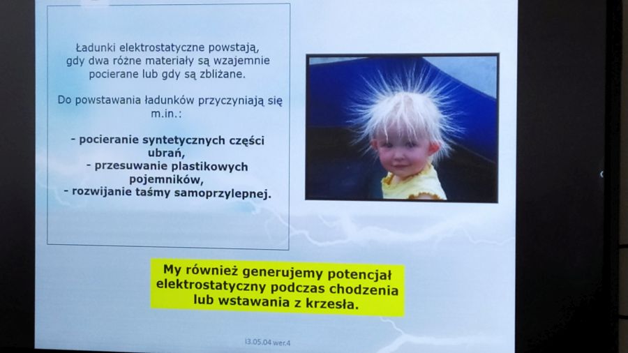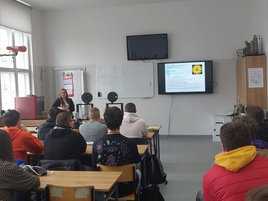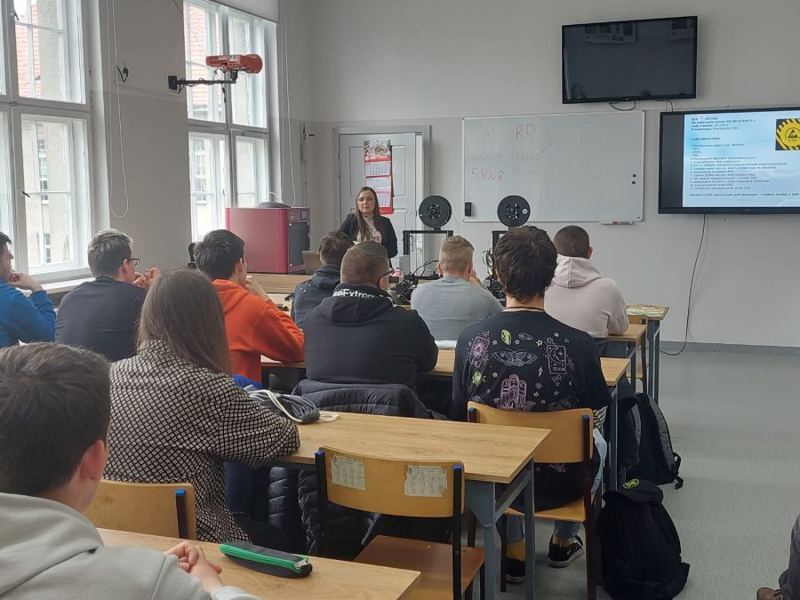 Pierwszym tematem była ochrona i przeciwdziałanie wyładowaniom elektrostatycznym (ESD) w produkcji elektroniki – szkolenie przeprowadzone przez Specjalistę ESD – Panią Amandę Panasiuk dla uczniów klas trzecich.