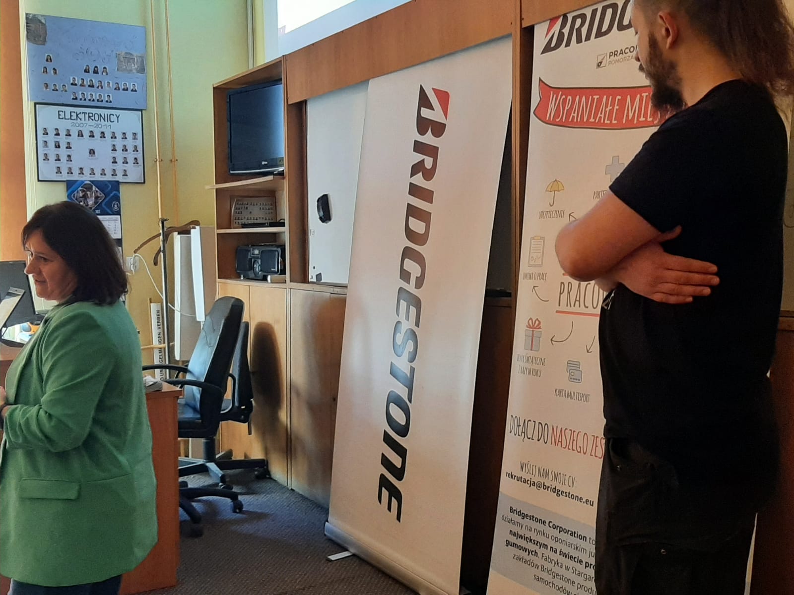 W dniu 24.03.2022 r. przedstawiciele fabryki Bridgestone Stargard Sp. z o. o. w składzie: Alicja Kropopek – Specjalista ds. personalnych, Laura Kwiatkowska- Specjalista ds. personalnych oraz Arkadiusz Gołąb -Technik Automatyk, spotkali się z uczniami klas maturalnych: 4 TH, 4 TE, 4TM.