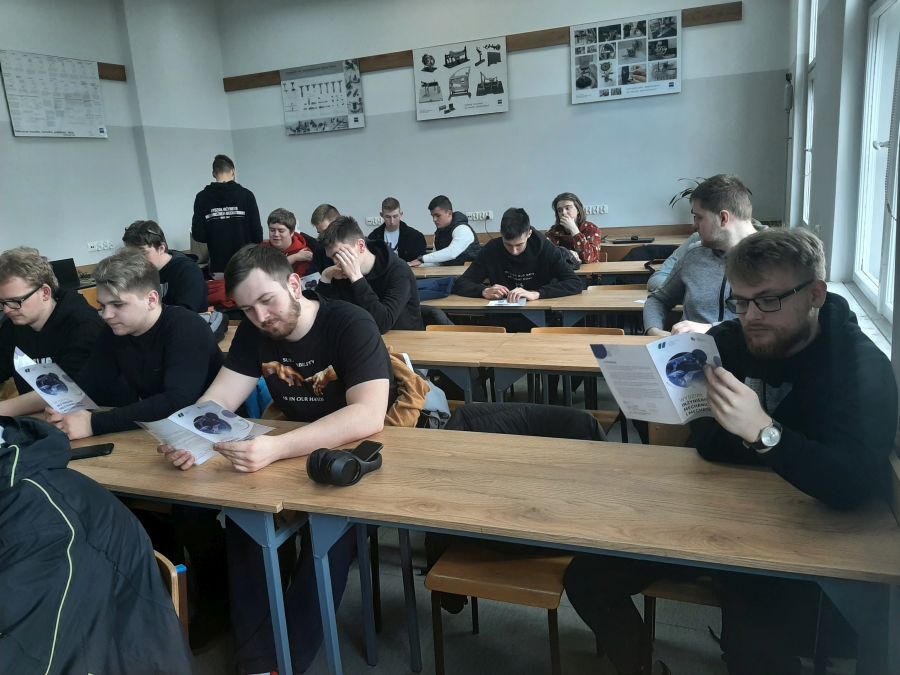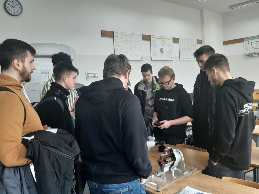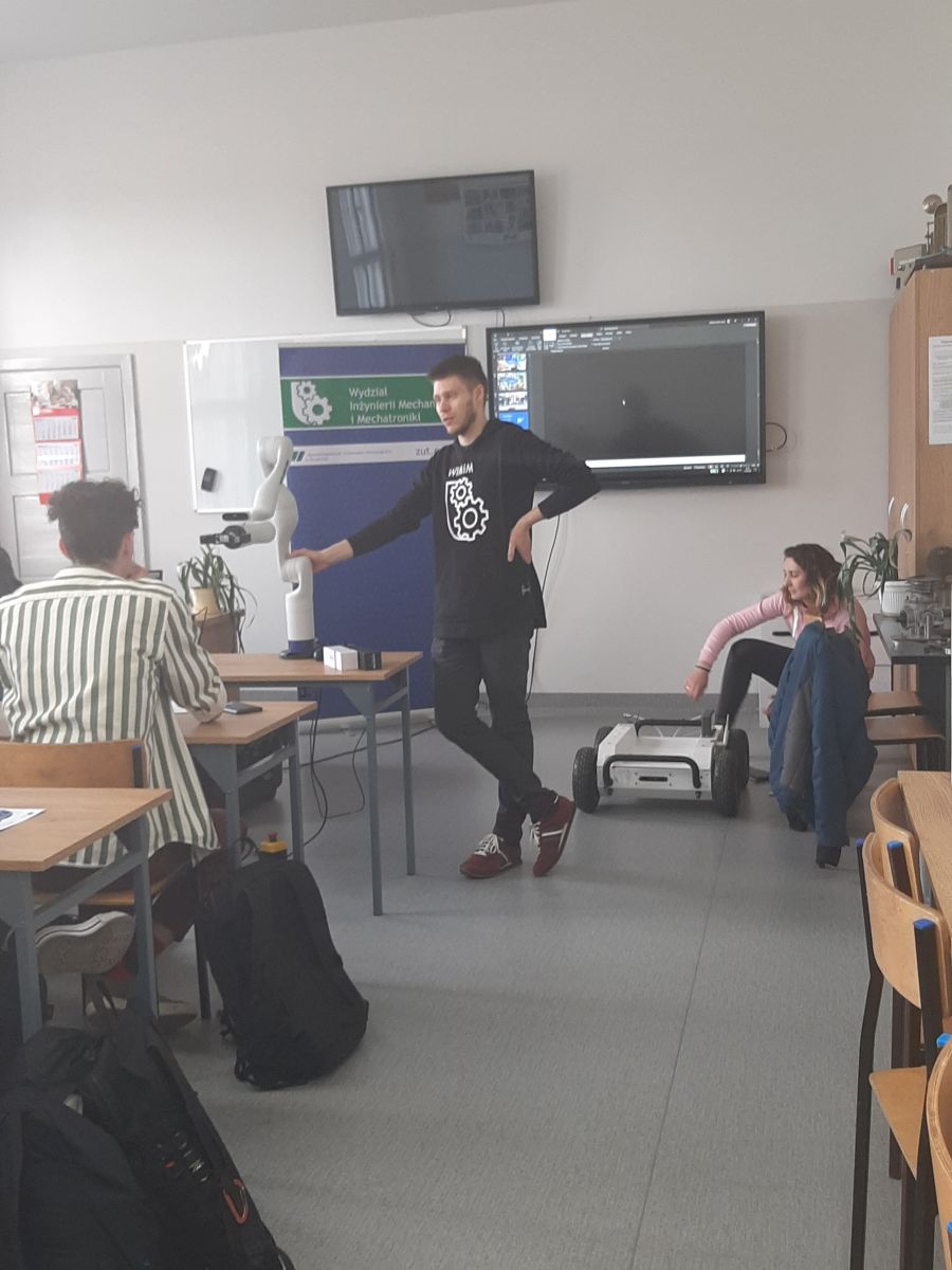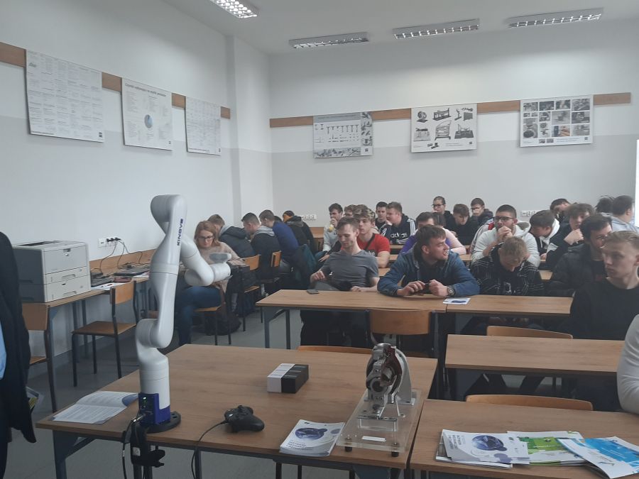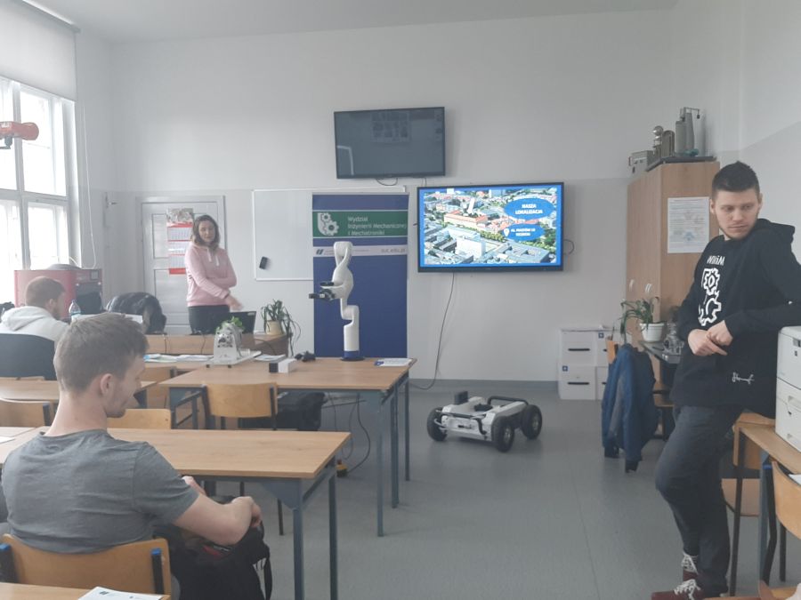 Podczas spotkania zaprezentowano informacje na temat wydziału, oferowanych kierunków studiów, kariery zawodowej. Jako jeden z najbardziej zrobotyzowanych wydziałów w regionie, przedstawiciele zaprezentowali uczniom dwa roboty. Pierwszy to semi-autonomiczny robot, którym uczniowie mogli własnoręcznie pokierować po korytarzach szkoły. Drugi robot to jeden z najbardziej zaawansowanych rozwiązań – cobot o 7 stopniach swobody z którym uczniowie również zmogli się zmierzyć.