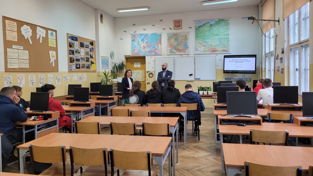 22 lutego 2024r. mieliśmy zaszczyt spotkać się z absolwentami technikum mechatronicznego, obecnymi studentami pierwszego i drugiego roku na politechnikach poznańskiej i szczecińskiej. Przeprowadzili pogadankę z uczniami klas technicznych, na której poruszali tematy życia studenckiego, obecnie prowadzonych projektów, problemów, jakie napotyka świeżo upieczony student i szczerze namawiali do podjęcia decyzji o wyborze ich uczelni, jako nowego planu na dalsze życie. Dziękujemy za wizytę i życzymy dalszych sukcesów w nauce i utrzymania zapału do powiększania wiedzy i umiejętności.