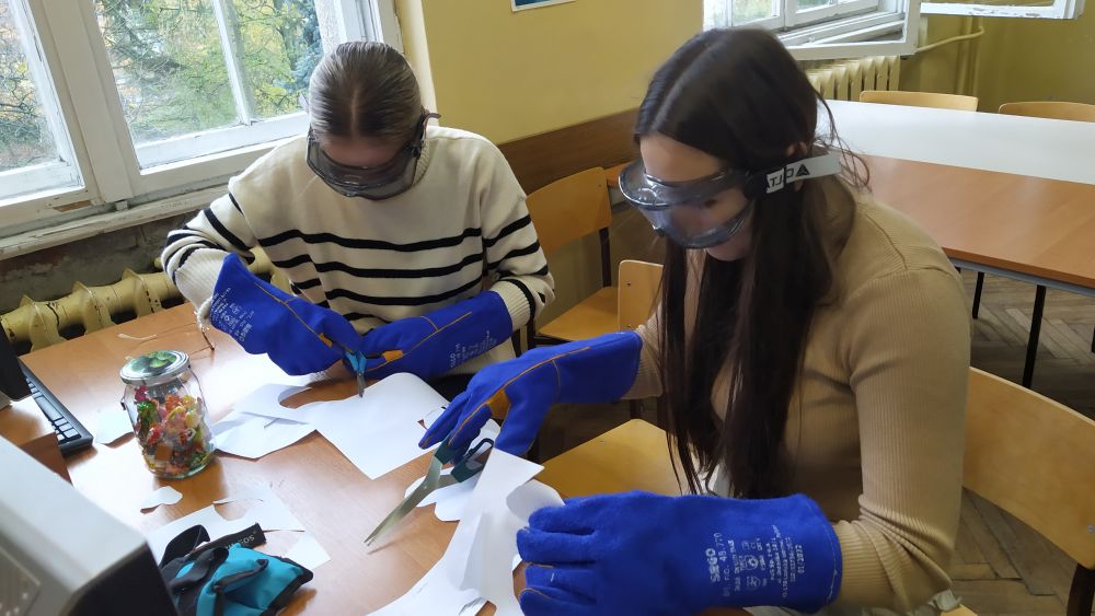 Uczniowie doświadczyli ograniczeń, z którymi mierzą się na co dzień osoby starsze. Okazało się, że wykonanie codziennych czynności, takich jak napisanie kilku słów, czy liter, wycięcie kształtu z papieru, otwarcie słoika i zjedzenie z niego cukierka, czy wejście po schodach nie są takie proste,, jak dla osób w pełni sprawnych.