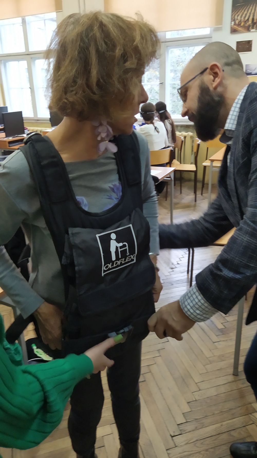 Warsztaty odbyły się z wykorzystaniem nowoczesnego sprzętu – Symulatora starości, w celu pokazania uczniom, jak funkcjonują osoby starsze (m.in. okulary, obciążniki, ograniczniki ruchomości stawów, rękawice zmniejszające precyzję ruchu itp.)