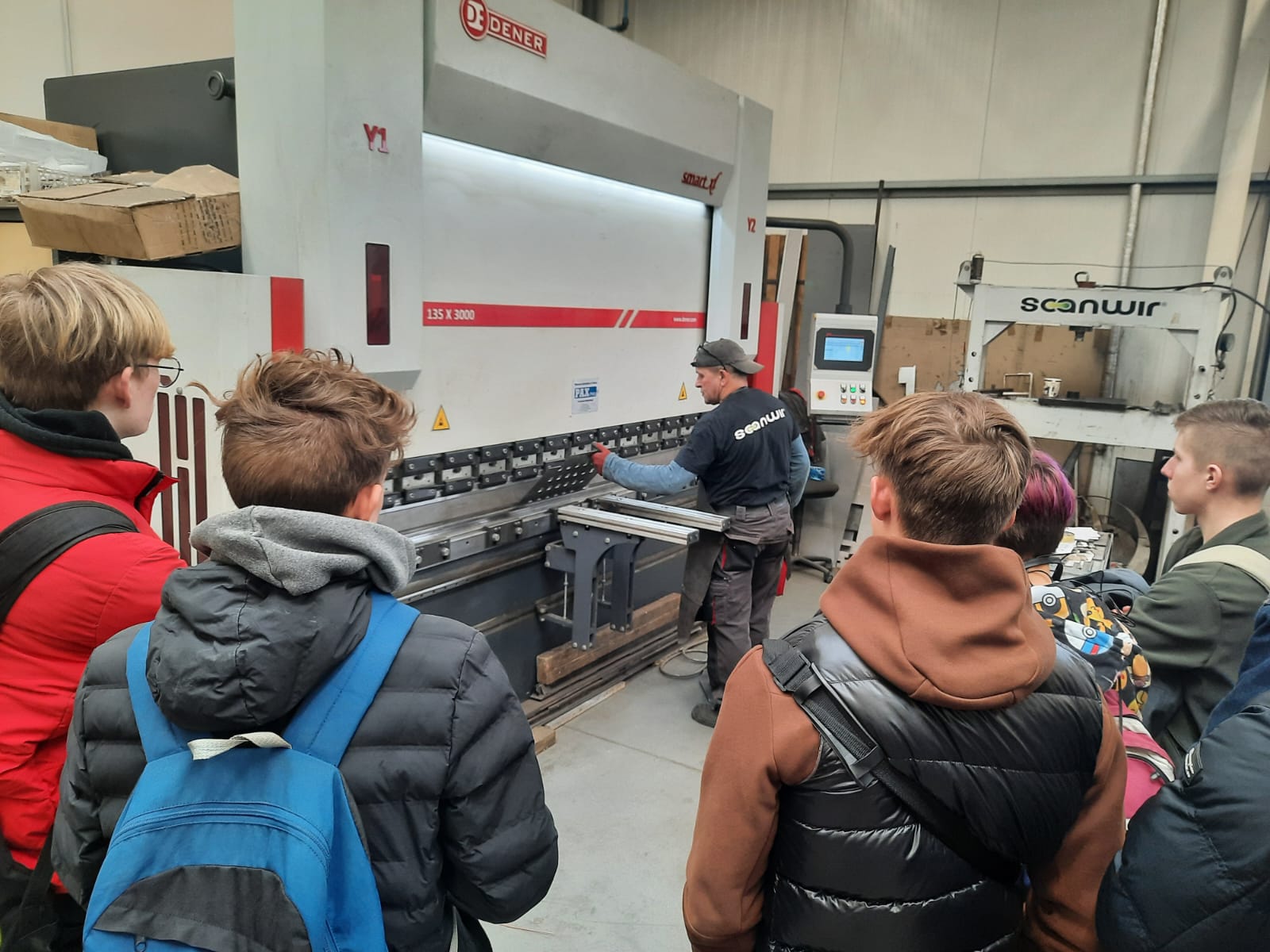 W trakcie spotkania uczniowie zostali bardzo dokładnie zaznajomieni z działem konstrukcyjnym firmy a następnie z działami produkcyjnymi. Mogli obserwować powstawanie zaprojektowanych produktów od cięcia plazmowego, poprzez wykonywanie gięcia na prasie hydraulicznej aż do pospawania gotowego elementu. Ponadto pracownik zaprezentował także proces wyważania dynamicznego wału napędowego.