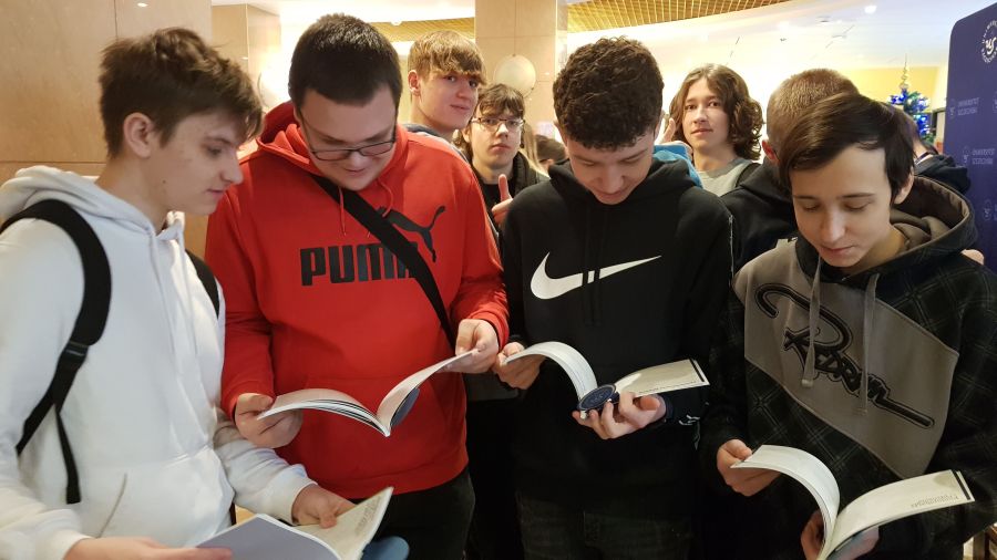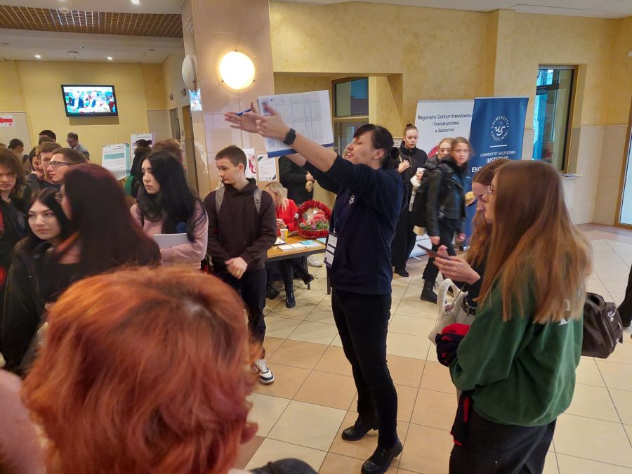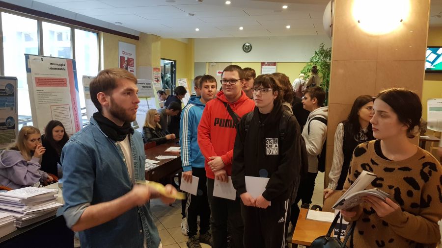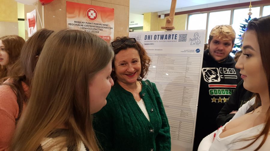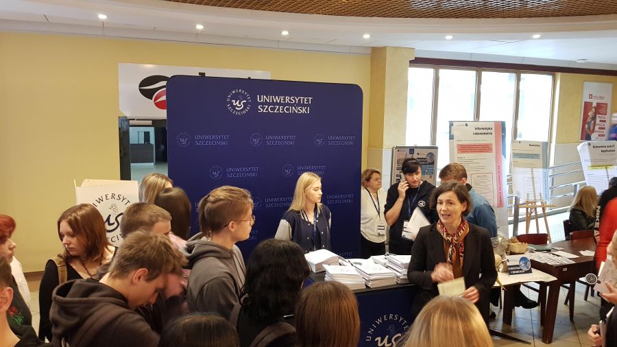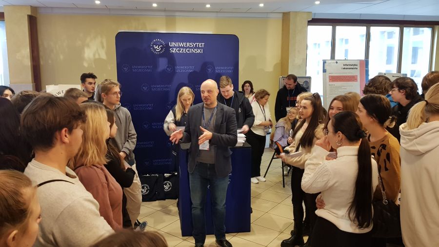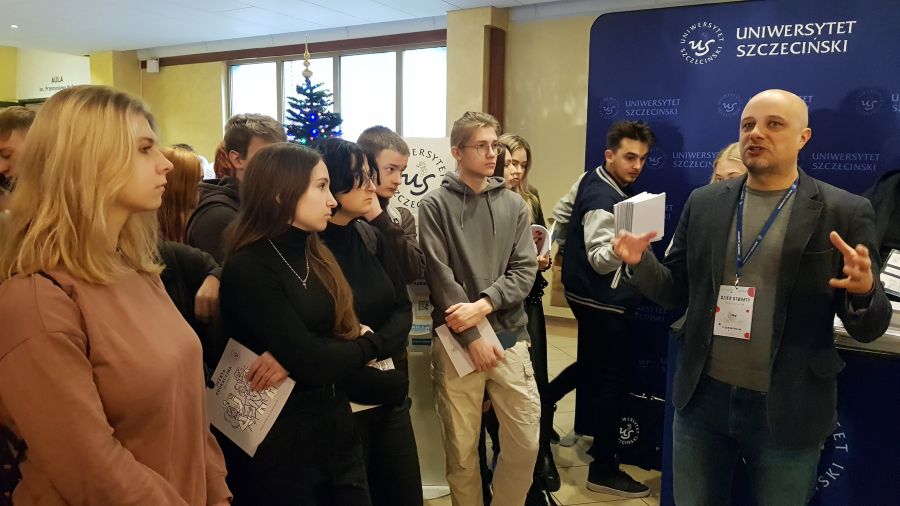 Dzień ten obfitował w różnego rodzaje atrakcje i wydarzenia. Na początku uczniom zaprezentowano sale wykładowe, pracownie i stoiska przedstawiające kierunki studiów, gdzie była bardzo pomocna pani Alicja Remiszewska z biura Promocji US, która odpowiadała na nurtujące młodzież pytania dotyczące oferty Uczelni, kierunków studiów, zasad rekrutacji itp.