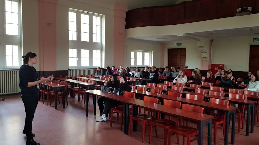 Podczas spotkania zostały przybliżone kierunki studiów oferowane przez IGPiGSE US. Wykład gościnny związany z obszarem turystyki poprowadziła pani dr Anna Gardzińska. W spotkaniach z młodzieżą uczestniczyli również pani