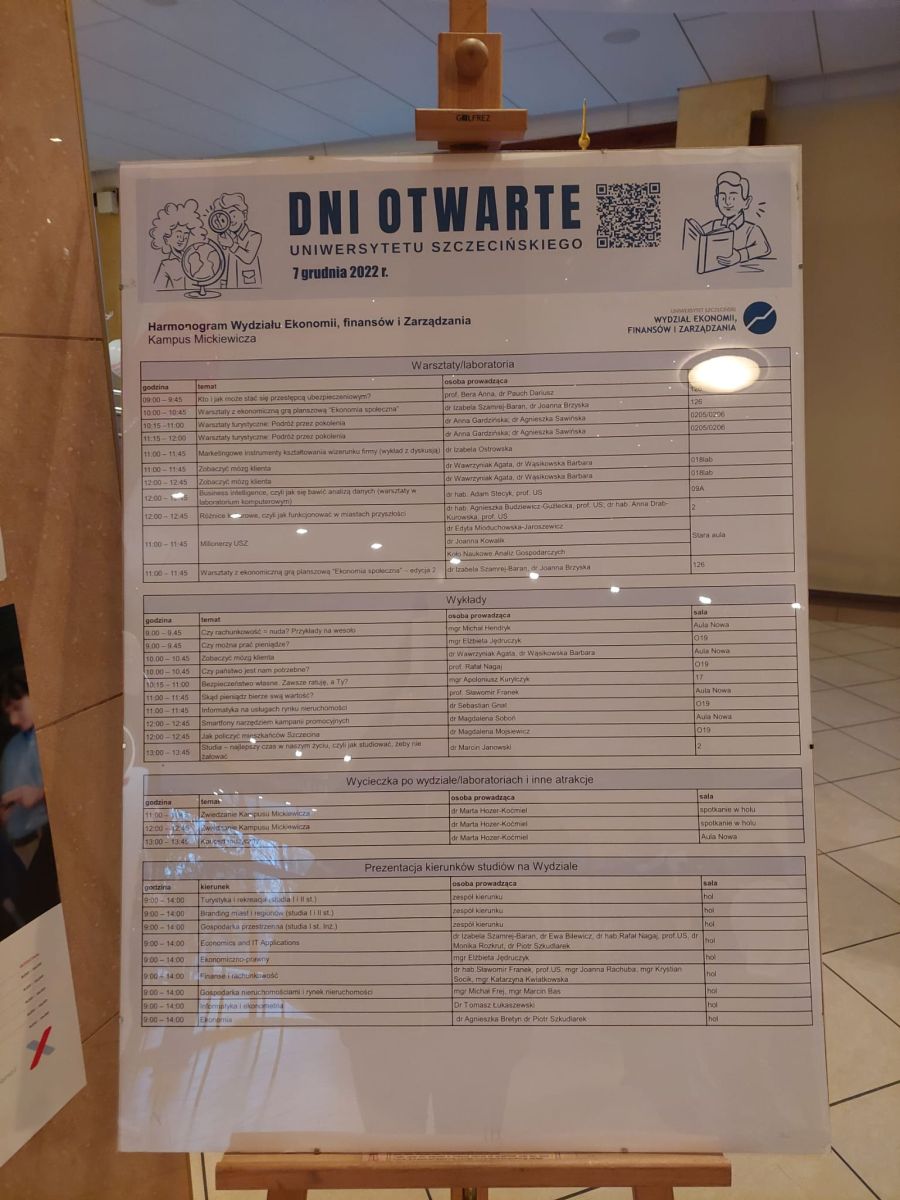 Po przybyciu na miejsce zostaliśmy serdecznie powitani przez panią dr inż. Elżbietę Ociepę-Kicińską, która przedstawiła harmonogram Dnia Otwartego na WEFiZ (Wydziale Ekonomii Finansów i Zarządzania US).