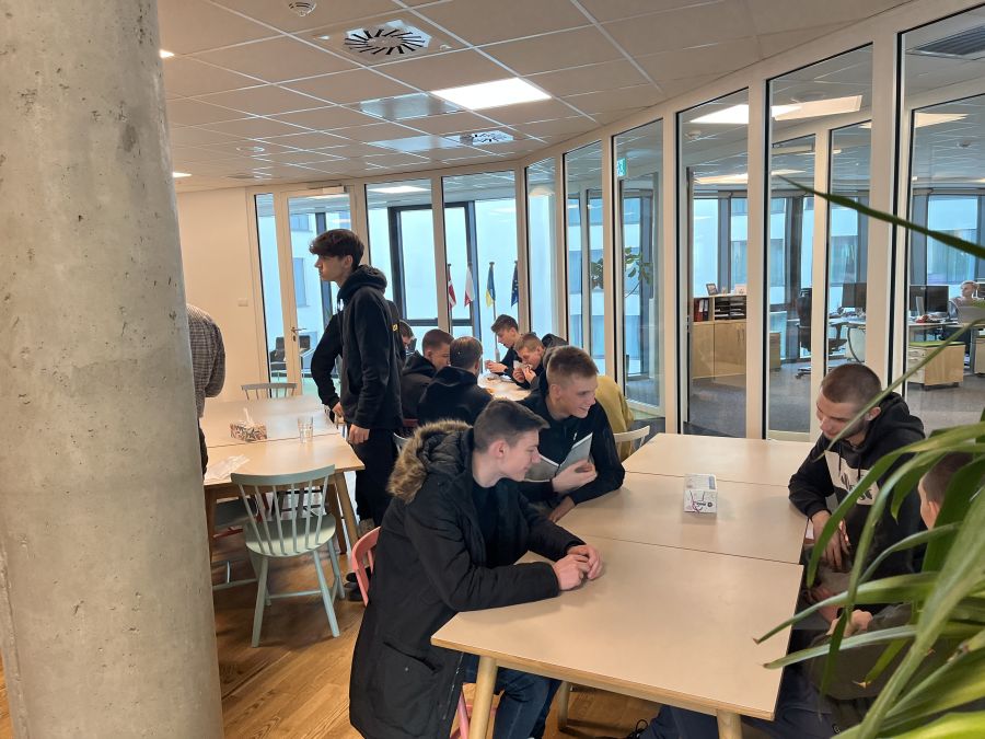 Młodzież została podzielona na trzy grupy i każda osobno zwiedzała zakład. W halach o łącznej powierzchni 12000 m 2 widzieliśmy nowoczesne, numeryczne maszyny, działy obróbki maszynowej i okleinowania, magazyny i lakiernię. Ciekawym i ekologicznym rozwiązaniem jest również własna kotłownia, która wykorzystuje odpady do ogrzania pomieszczeń.