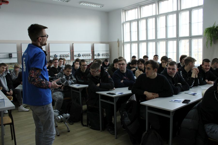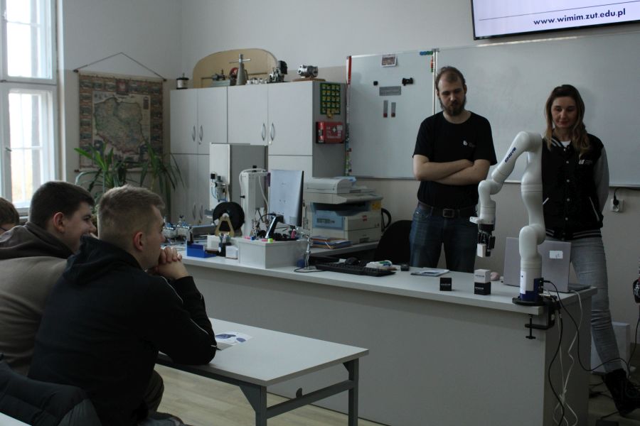 Podczas spotkania uczniowie otrzymali informacje na temat Wydziału oraz oferowanych kierunków studiów, a także kształtowania swojej kariery zawodowej. Jako jeden z najbardziej zrobotyzowanych wydziałów w rejonie, przedstawiciele zaprezentowali dwa roboty.