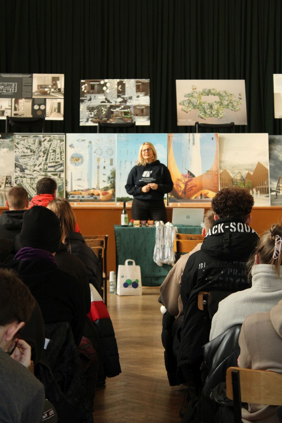 W auli szkoły Pani Aneta Zierke – Specjalista ds. Wydziału Kształtowania Środowiska i Rolnictwa, zaprezentowała ogólnie uczelnię, mówiąc o zasadach rekrutacji, kierunkach, wydziałach, stypendiach itp. Przy tej okazji uczniowie mogli degustować suszone owady i larwy.