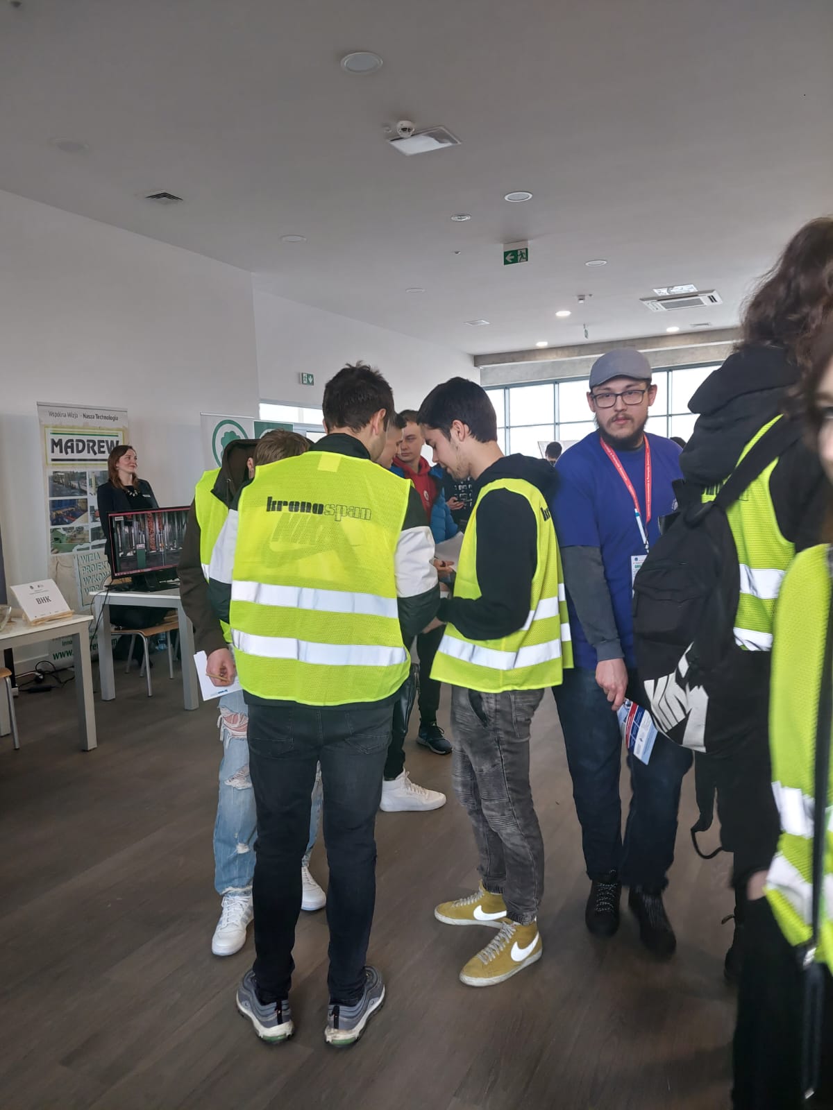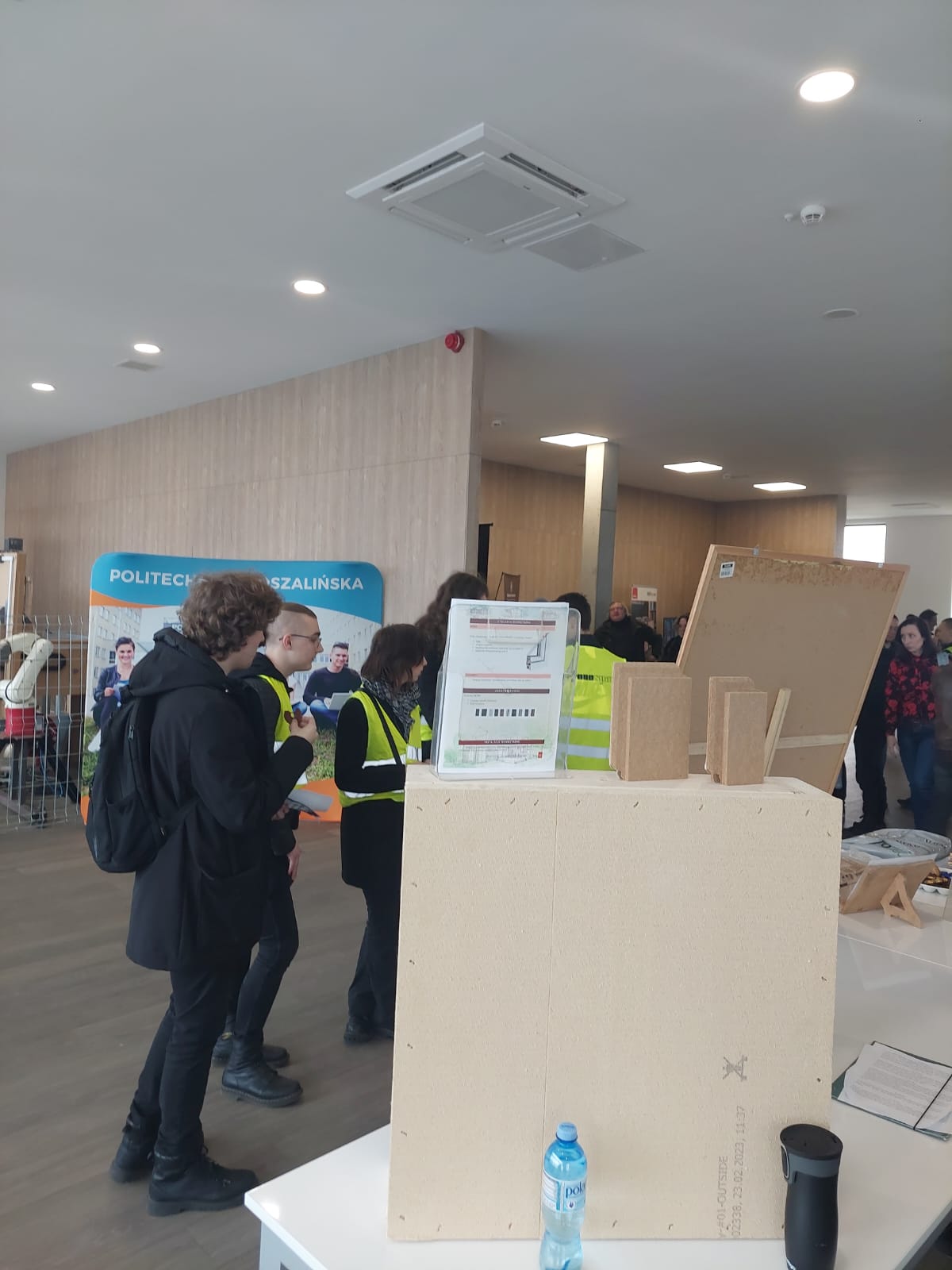 O godzinie 9.00 wyruszyliśmy ze Stargardu do Szczecinka. Podróż zajęła nam 2 godziny. O godzinie 11.00 – po wcześniejszym podzieleniu na grupy – rozpoczęliśmy zwiedzanie, gdzie opowiedzieli nam o Filii w Szczecinku, która kształci w zakresie automatyki i automatyzacji procesów przemysłowych oraz procesów i maszyn przemysłu drzewnego, projektowania konstrukcji i wyrobów z uwzględnieniem specyfiki przemysłu meblarskiego. Poznaliśmy również budowę i obsługę systemów informatycznych automatyki, projektowanie i programowanie układów automatyki oraz obsługę systemów utrzymywania ruchu. Pokazano nam maszyny do monitorowania składu drewna oraz wytrzymałości płyt i mebli, które używane są w nowoczesnych zakładach stolarskich. Po zwiedzeniu laboratorium skierowaliśmy się do firmy Kronospan, gdzie zapoznaliśmy się z produkcją i wykorzystywaniem płyt w ich zakładzie oraz z ogólnym działaniem firmy. Następnie zwiedziliśmy hale produkcyjne płyt Kronospan. Zdobyliśmy wiedzę jak wygląda automatyzacja przemysłu drzewnego oraz proces produkcji płyt. Po powrocie do Filii udaliśmy się na wykład o gazach w drewnie. Po wykładzie mieliśmy okazję obejrzenia prac dyplomowych byłych studentów Politechniki Koszalińskiej.