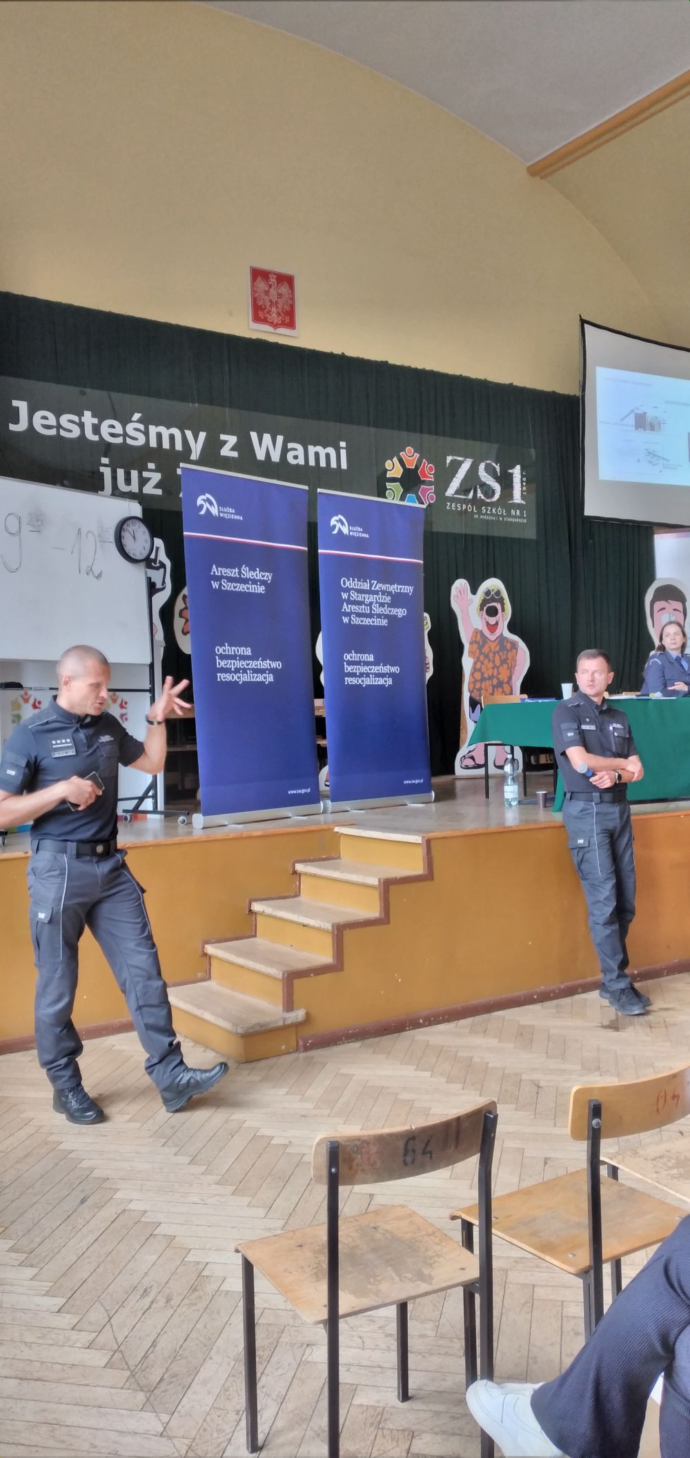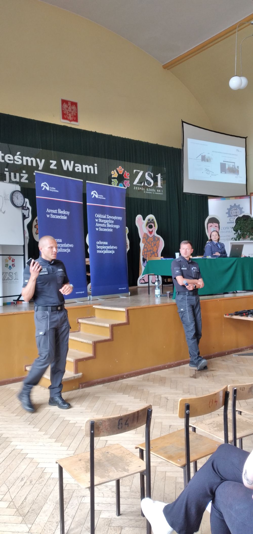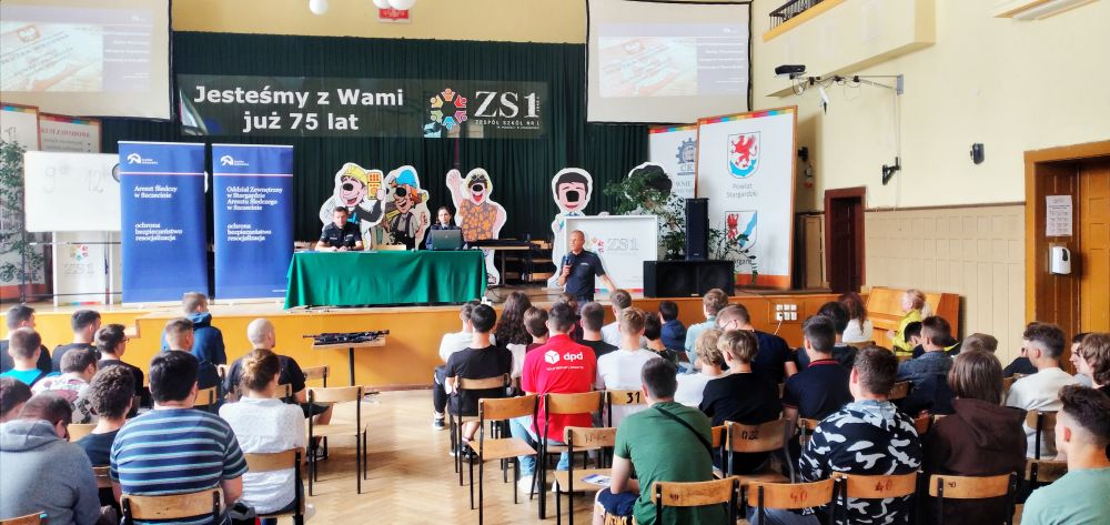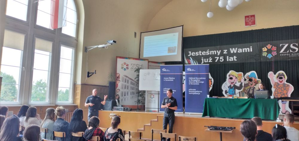 Funkcjonariusze z Oddziału Zewnętrznego w Stargardzie oraz Aresztu Śledczego w Szczecinie spotkali się z uczniami szkoły tj. kpt. Grzegorz Terlikowski, chor. Łukasz Wilk, chor. Magdalena Jakubowska.
