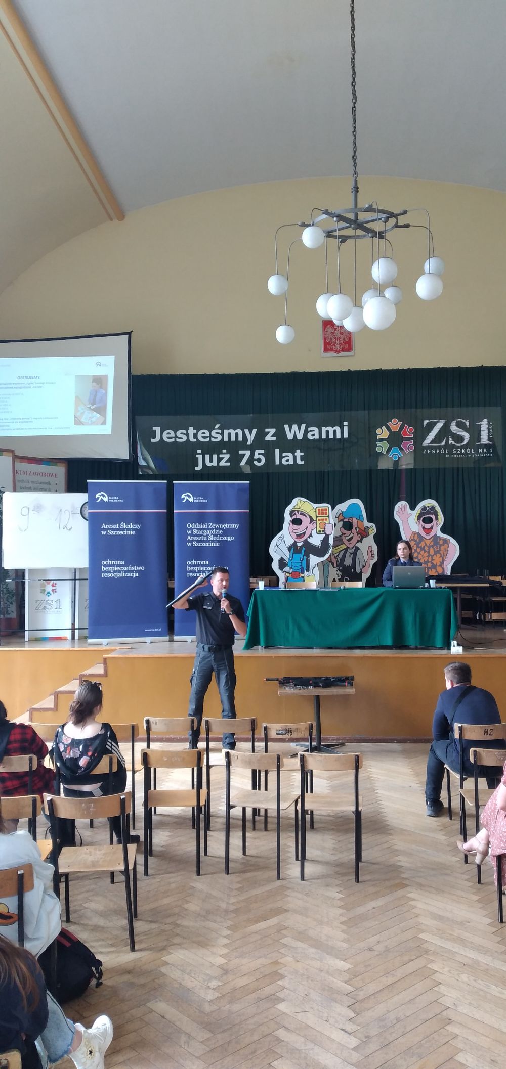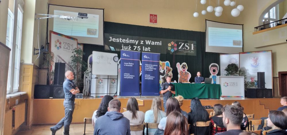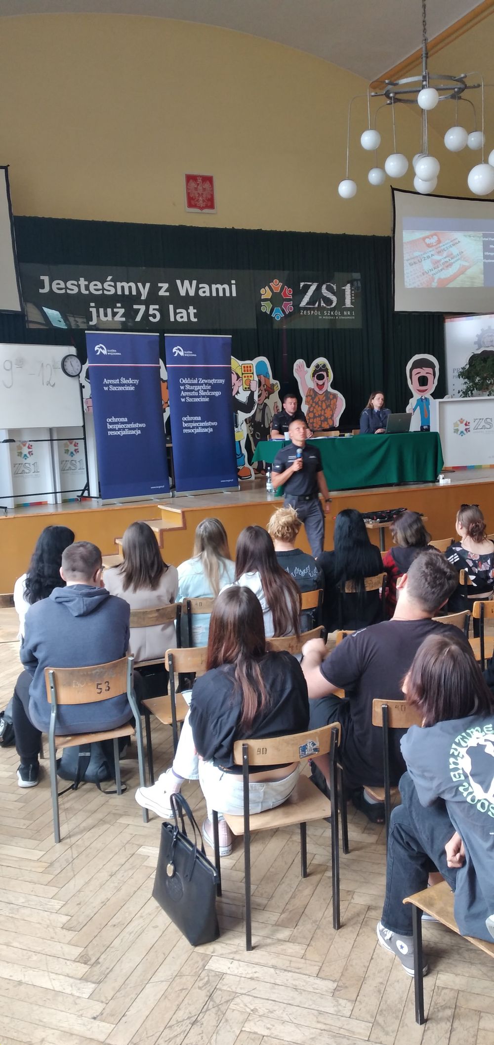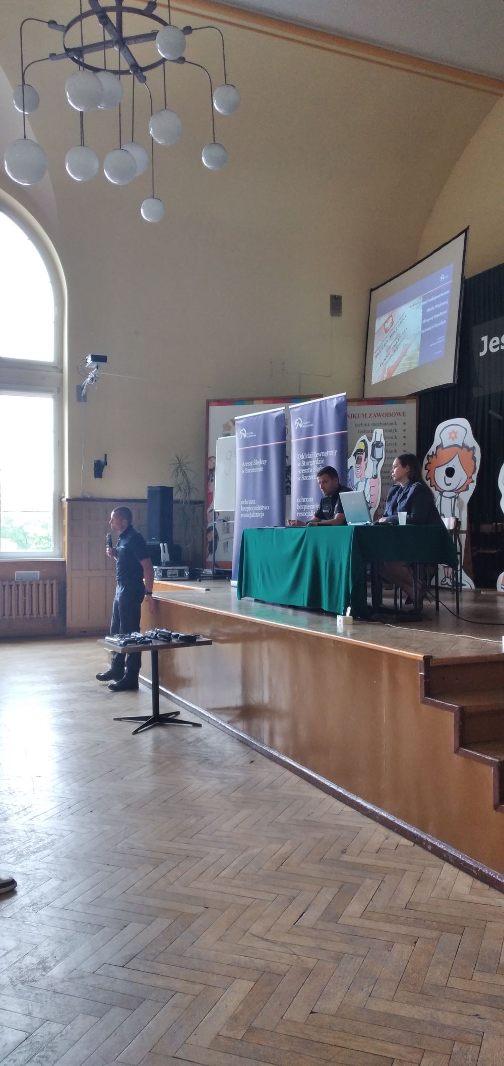 Funkcjonariusze z Oddziału Zewnętrznego w Stargardzie oraz Aresztu Śledczego w Szczecinie spotkali się z uczniami szkoły tj. kpt. Grzegorz Terlikowski, chor. Łukasz Wilk, chor. Magdalena Jakubowska.