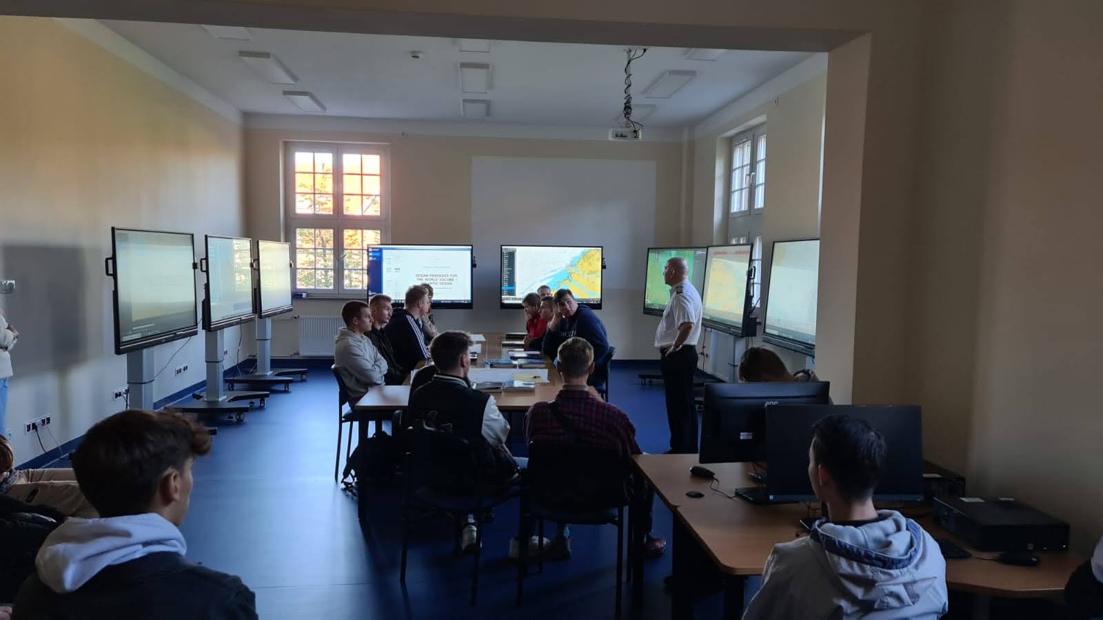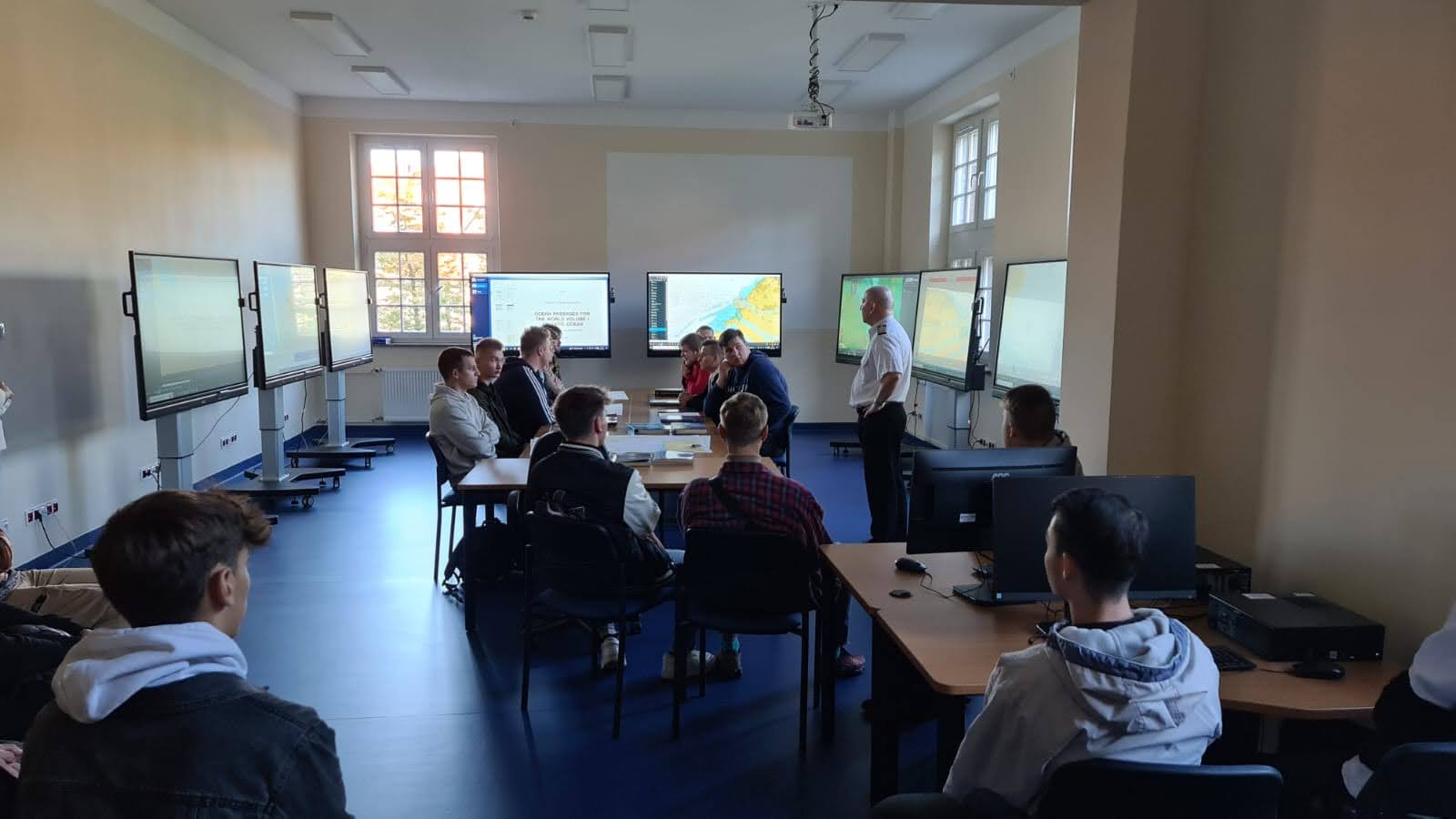 Uczniowie, podzieleni na małe grupy, mieli okazję zobaczyć różne laboratoria, m.in. Laboratorium High Voltage, Laboratorium VR oraz Laboratorium ze stołami nawigacyjnymi, posłuchać ciekawych informacji, dowiedzieć się o zaletach studiowania, korzyściach płynących z uzyskania dokumentów o randze międzynarodowej, unikalności wydziałów na tle innych kierunków uczelni w Polsce od Wykładowców Uczelni, którą reprezentowali: