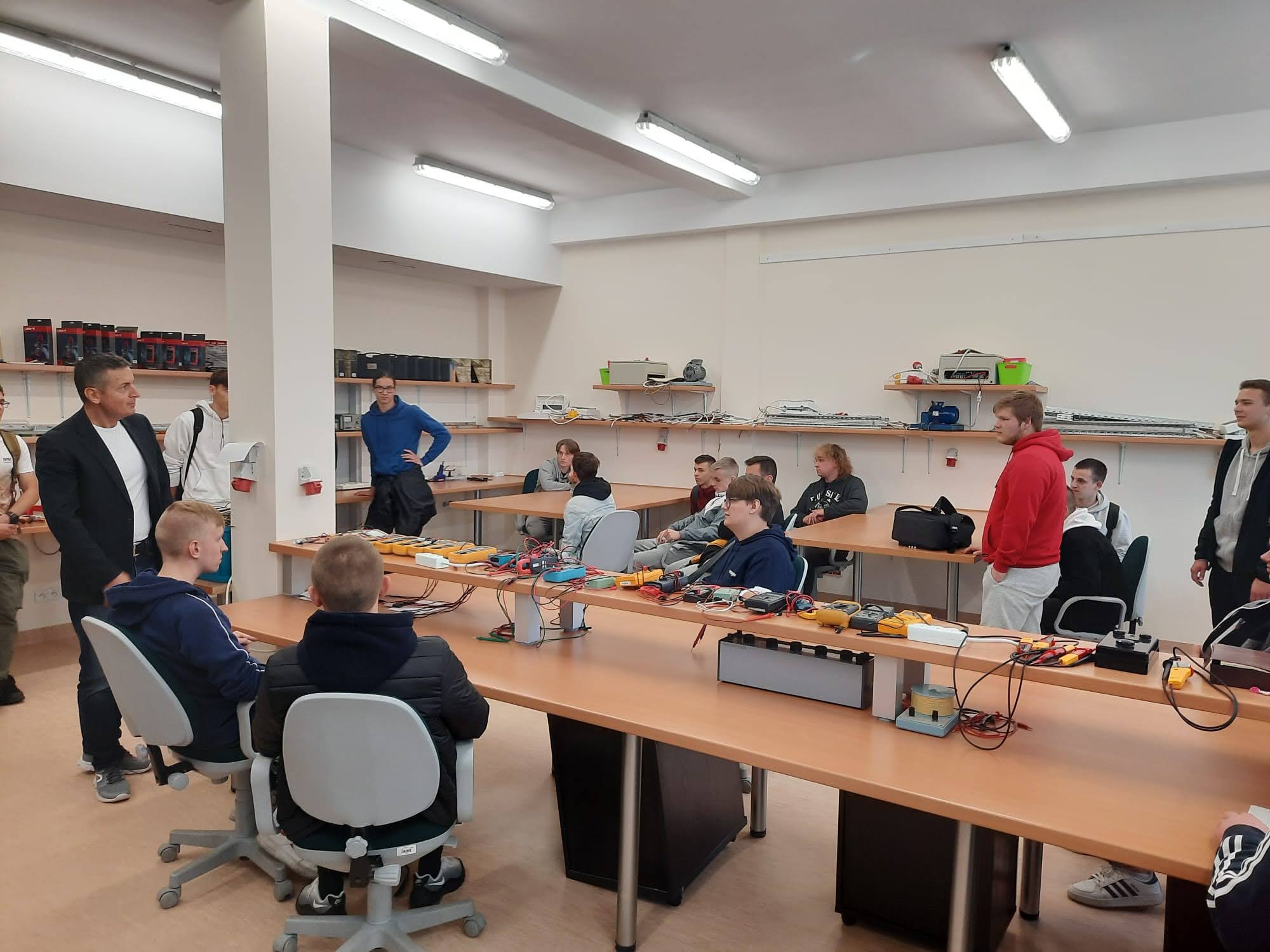 Następnie udaliśmy się do budynku przy ul. Willowej na Wydział Mechatroniki i Elektrotechniki, gdzie pod kierunkiem Prodziekana ds. Kształcenia dr. inż. Mariusza Sosnowskiego i Dydaktyka mgr inż. Andrzeja Zarębskiego uczniowie zwiedzali laboratoria. Na zakończenie odbyło się spotkanie z władzami dziekanatu, w celu omówienia zasad składania dokumentów, kontaktu, obiegu informacji.