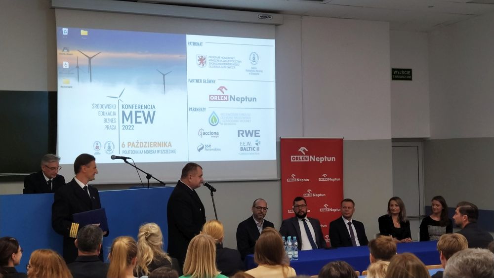 W czwartek 6.10.2022r. uczniowie klas czwartych H, L i E, brali udział w konferencji „MEW 2022”, która odbyła się na Politechnice Morskiej w Szczecinie. Celem konferencji było zapoznanie młodzieży z prężnie rozwijającą się w naszym kraju branżą energetyki wiatrowej w postaci farm wiatrowych budowanych na morzu. Wykłady prowadzili przedstawiciele uczelni i pracownik firmy ORLEN Neptun. Młodzież miała możliwość zapoznać się z systemami symulacji jednostek wodnych obsługujących farmy wiatrowe, przespacerować się w VIAR po platformie wiatrowej w zapoznać się z szeroką ofertą szkolnictwa w branży energetyki wiatrowej przedstawionej przez Politechnikę Morską, oraz zapoznać się z możliwością szkoleń, praktyk i podjęcia pracy w tej branży.