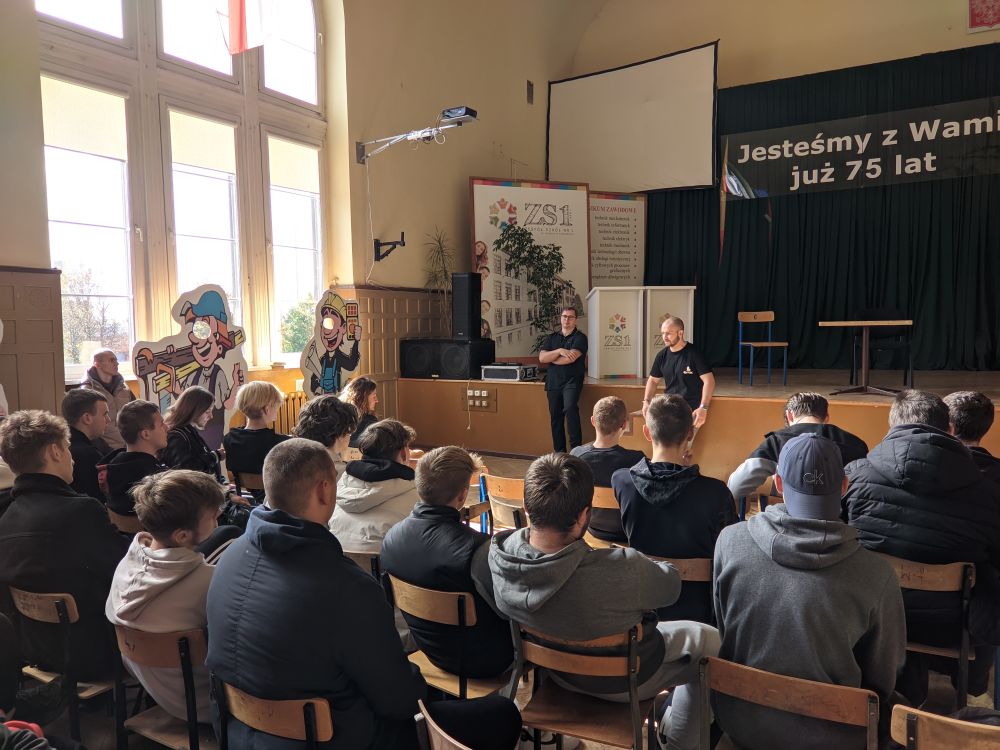 Podczas prezentacji połączonej ze szkoleniem na temat “Kompetencje zawodowe niezbędne na rynku pracy” uczniowie mogli zapoznać się z trendami na rynku pracy oraz uzyskać informacje, w jaki sposób można połączyć naukę z pracą.