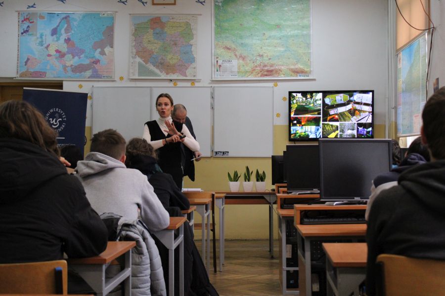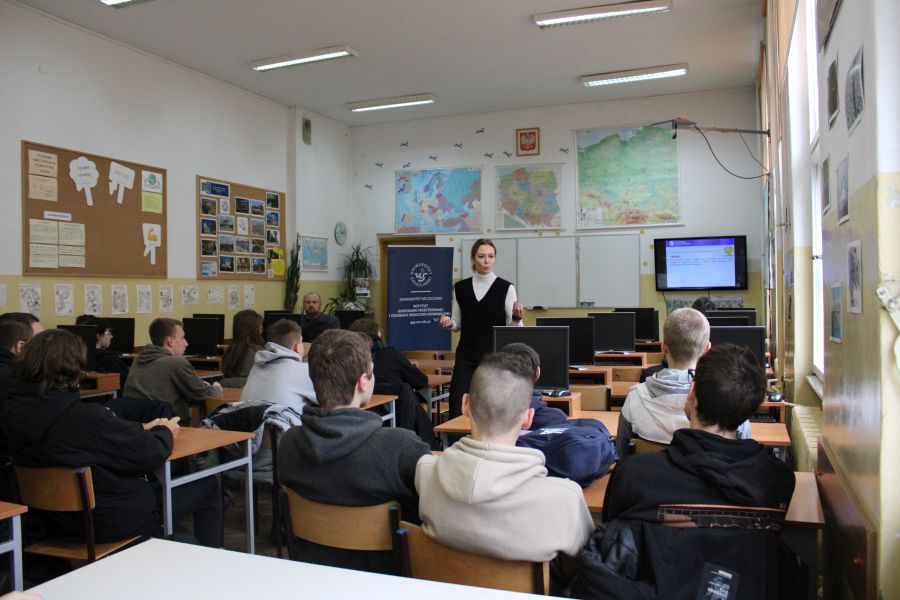 Dnia 9 listopada 2022r. uczniowie z klas maturalnych: 4I, 4T, 4ML, 4G mieli okazję spotkać się z przedstawicielem Uniwersytetu Szczecińskiego – panią Anetą Szeremetą. Na spotkaniu dowiedzieli się, że warto studiować na jednym z 93 kierunków 7 wydziałów Uniwersytetu Szczecińskiego.
