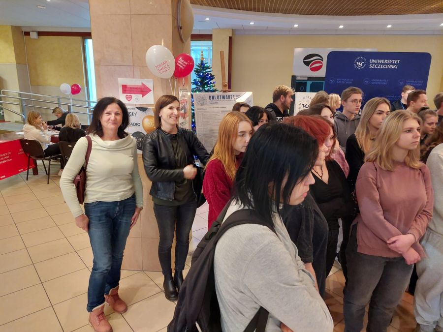 Dzień ten obfitował w różnego rodzaje atrakcje i wydarzenia. Na początku uczniom zaprezentowano sale wykładowe, pracownie i stoiska przedstawiające kierunki studiów, gdzie była bardzo pomocna pani Alicja Remiszewska z biura Promocji US, która odpowiadała na nurtujące młodzież pytania dotyczące oferty Uczelni, kierunków studiów, zasad rekrutacji itp.