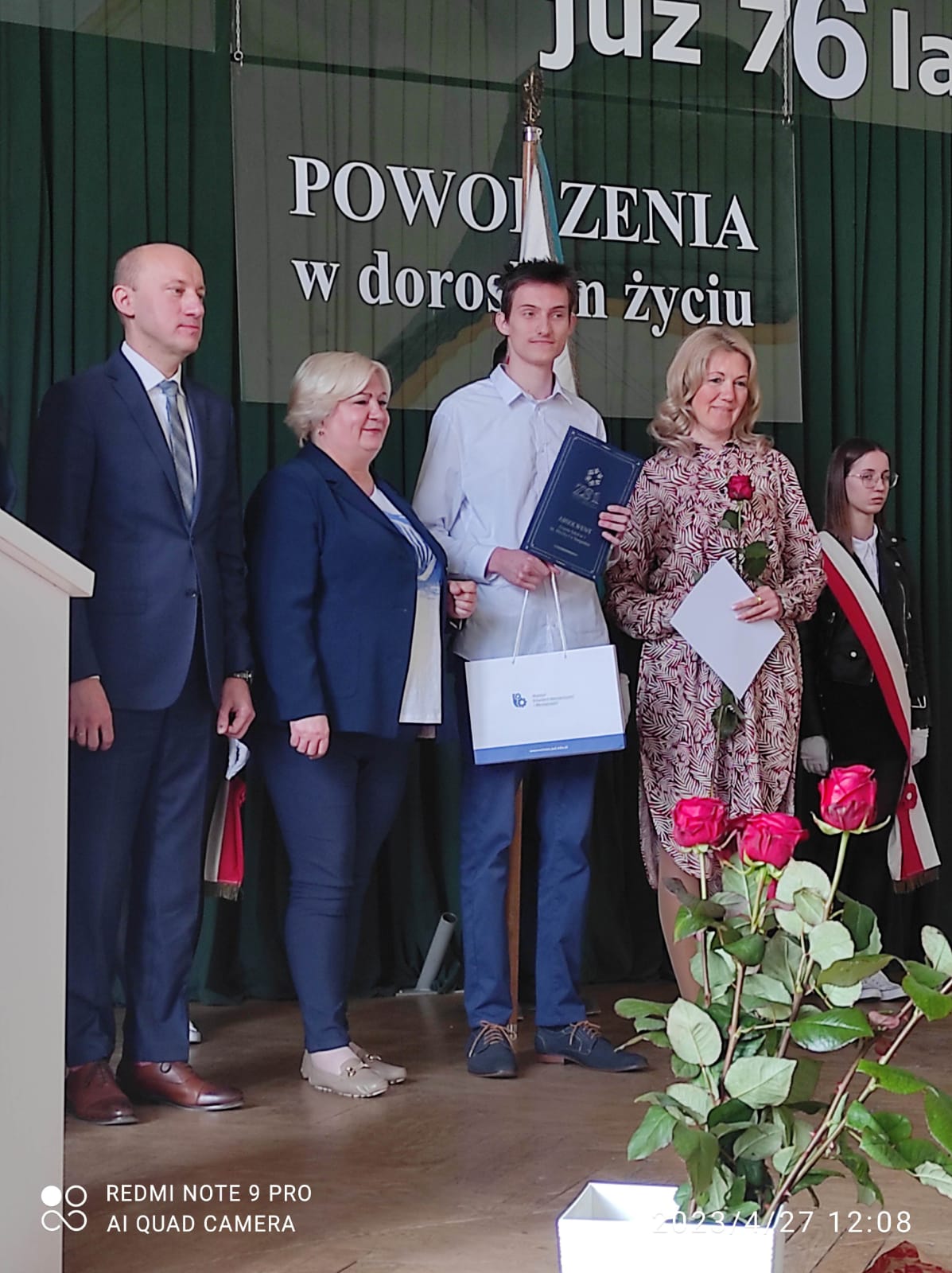 Podczas akademii Dyrektor Szkoły, Pani Starosta oraz przedstawiciele wyższych uczelni wręczyli świadectwa, nagrody oraz listy gratulacyjne dla uczniów, którzy