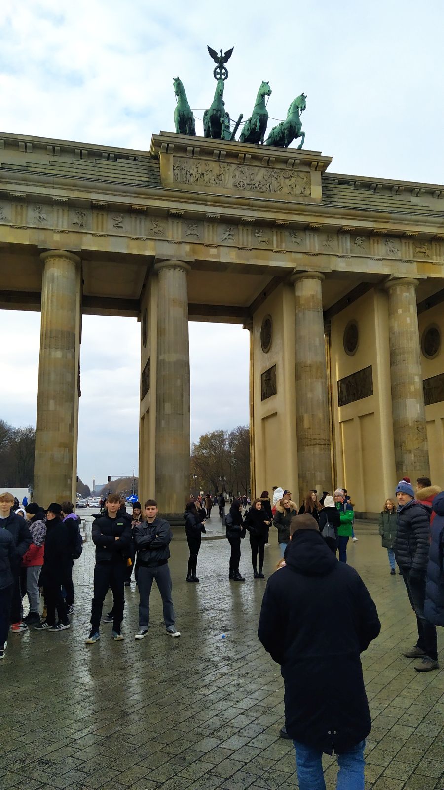 Następnie udaliśmy się do Bramy Brandeburskiej (Brandenburger Tor), przedstawiającej uskrzydloną boginię zwycięstwa Wiktorię i zrobiliśmy pamiątkowe zdjęcia. Znajduje się ona na Pariser Platz (Plac Paryski), skąd rozciąga się Aleja Unter den Linden („Pod Lipami”), mająca 1,5 km długości. W końcu dotarliśmy do Pomnika Pomordowanych Żydów Europy – Denkmal für die ermordeten Juden Europas. Podczas przechodzenia między częściami tego pomnika można poczuć się jak ofiary, którym ten Pomnik został wybudowany.