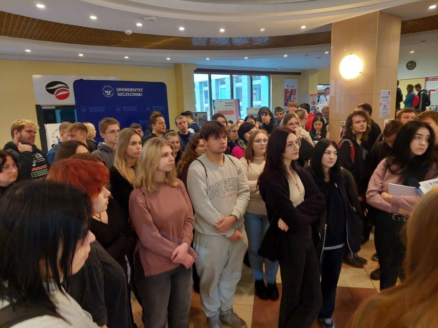 Dzień ten obfitował w różnego rodzaje atrakcje i wydarzenia. Na początku uczniom zaprezentowano sale wykładowe, pracownie i stoiska przedstawiające kierunki studiów, gdzie była bardzo pomocna pani Alicja Remiszewska z biura Promocji US, która odpowiadała na nurtujące młodzież pytania dotyczące oferty Uczelni, kierunków studiów, zasad rekrutacji itp.