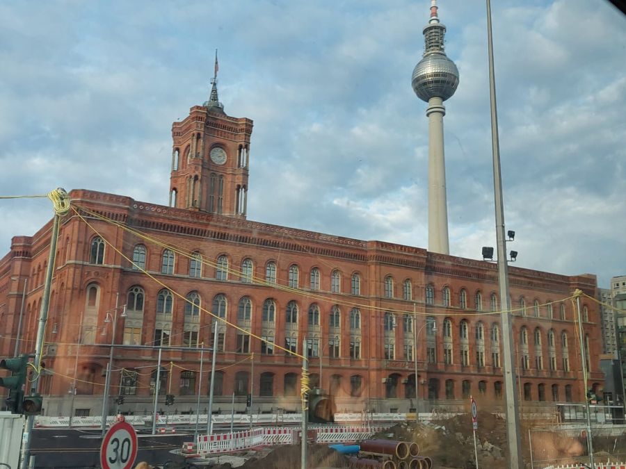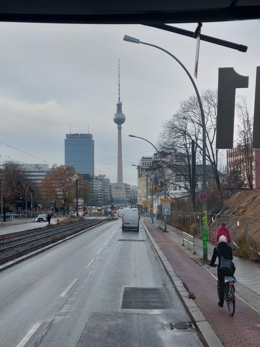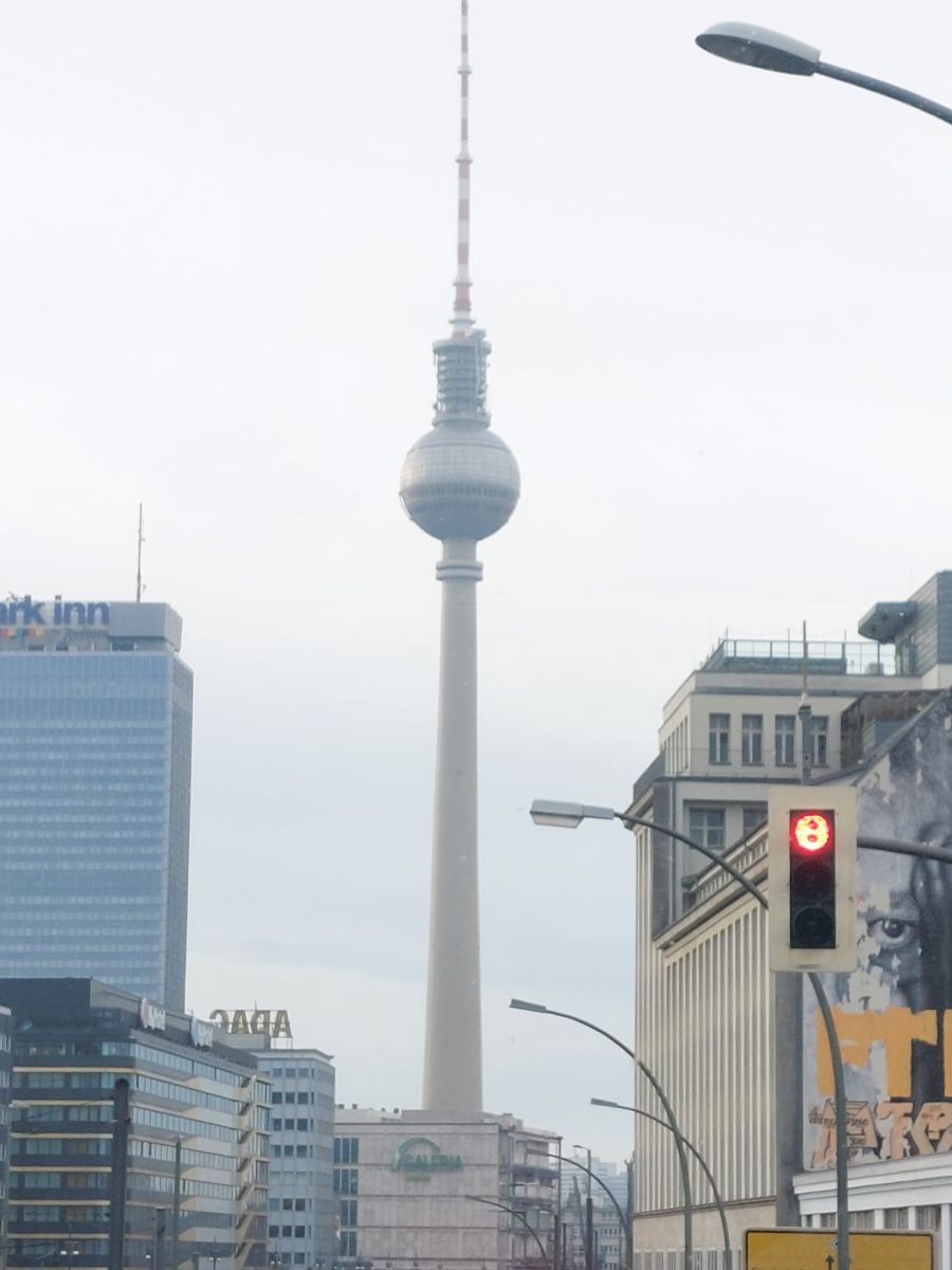 W czasie przejazdu przez Berlin towarzyszył nam cały czas widok Wieży Telewizyjnej (Berliner Fernsehturm) o wysokości 368 m. z restauracją i galerią widokową u góry.