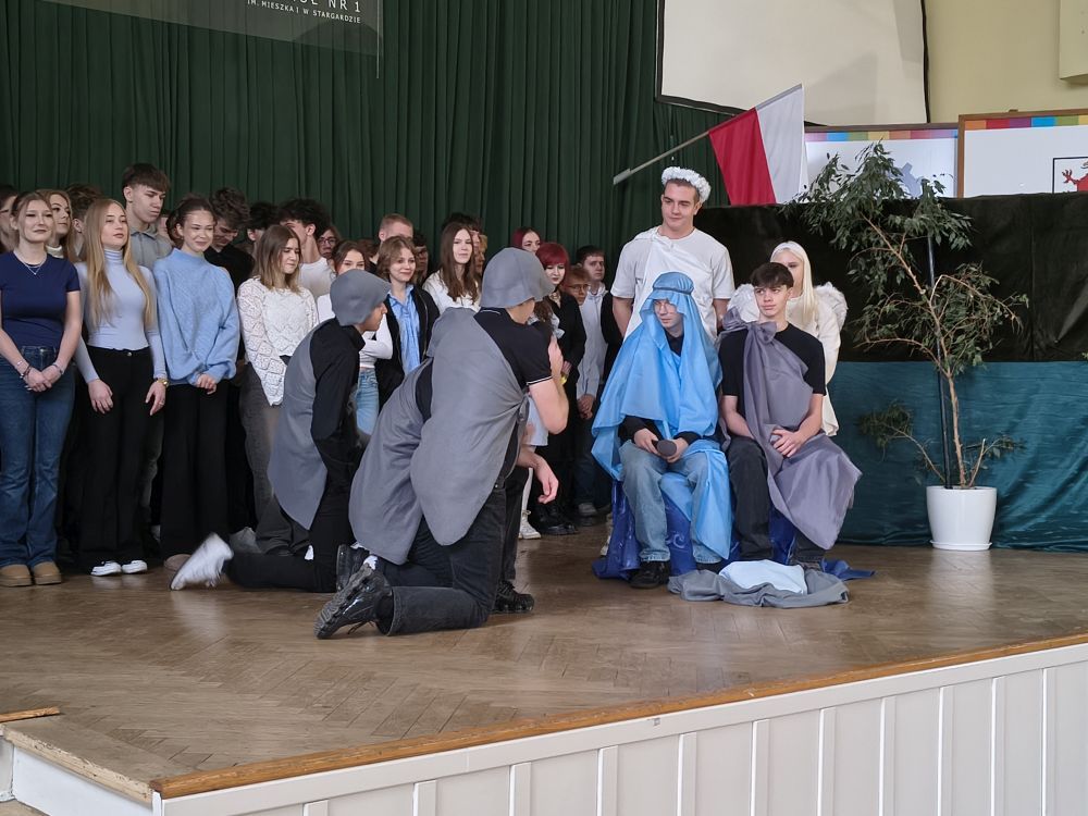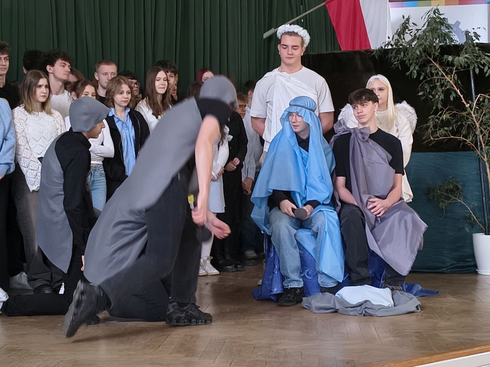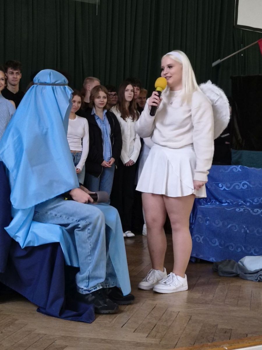 18 grudnia w naszej szkole odbyły się jasełka bożonarodzeniowe. Uczniowie klasy 2TT i 2TEL zaprezentowali piękne przedstawienie wprowadzając społeczność szkolną w świąteczny nastrój. Kolędy i piosenki świąteczne w wykonaniu chóru uświetniły występ. Jasełka zostały przygotowane przez uczniów pod opieką p. Angeliki Antończak i Magdaleny Szwacińskiej. Spotkały się z ciepłym przyjęciem i zostały nagrodzone gromkimi brawami.