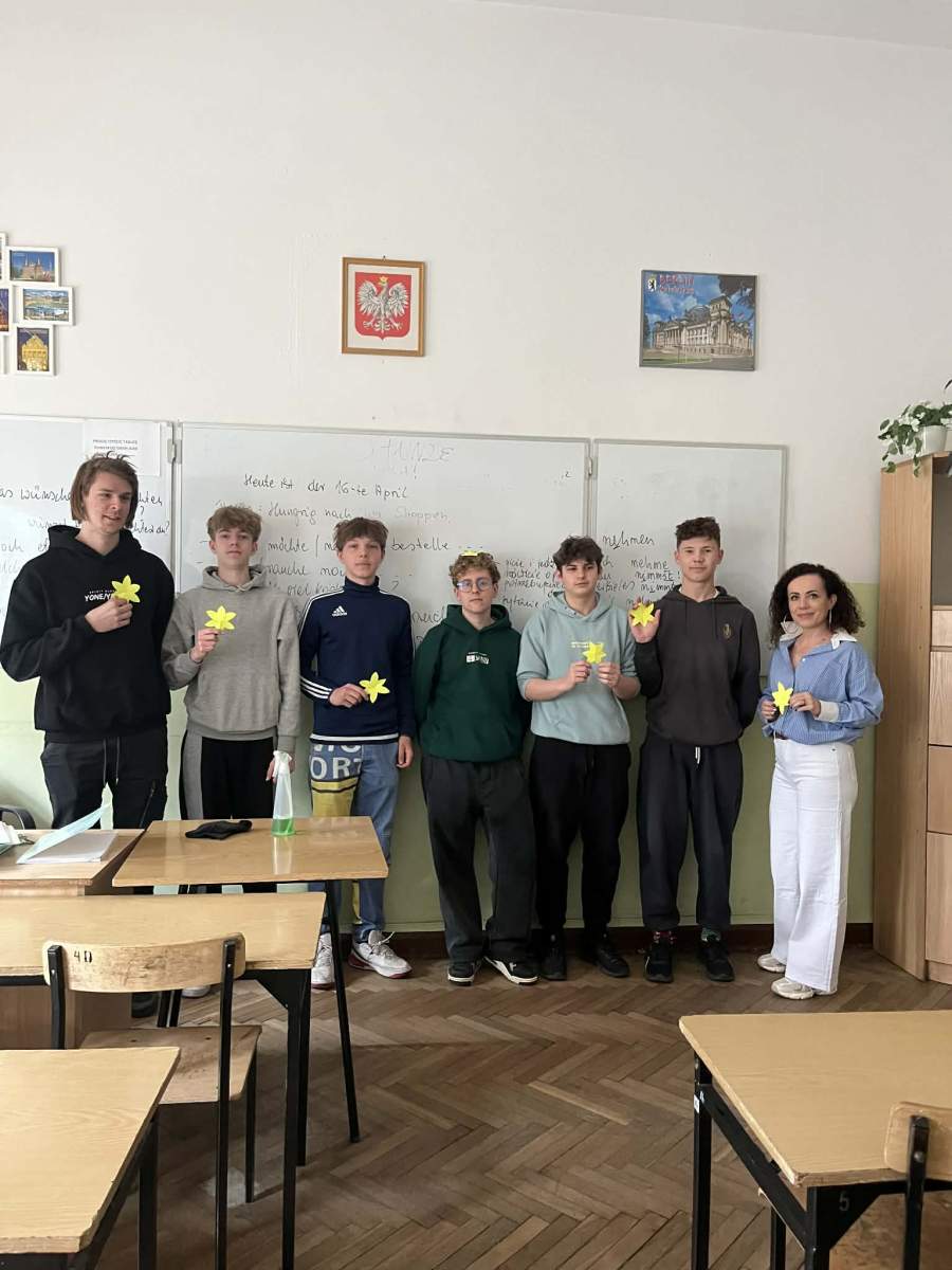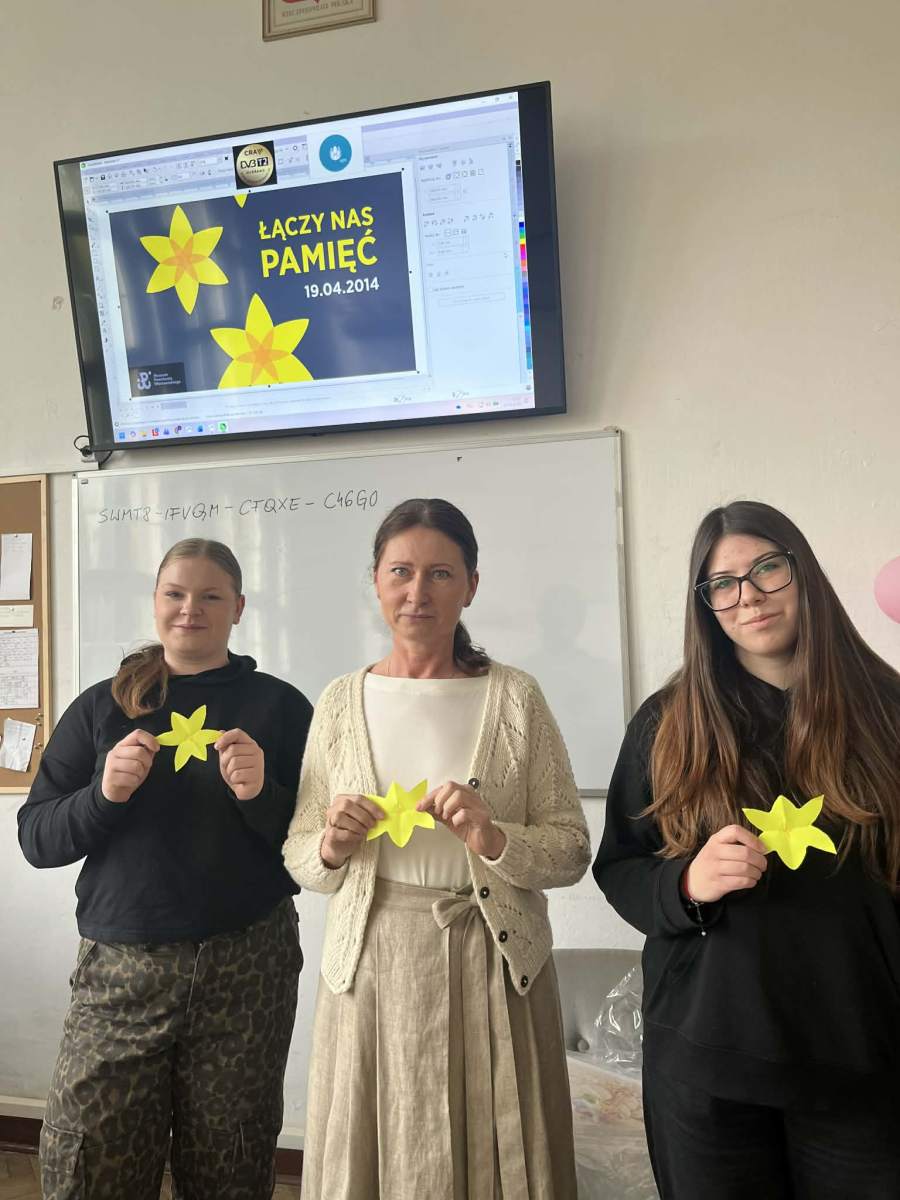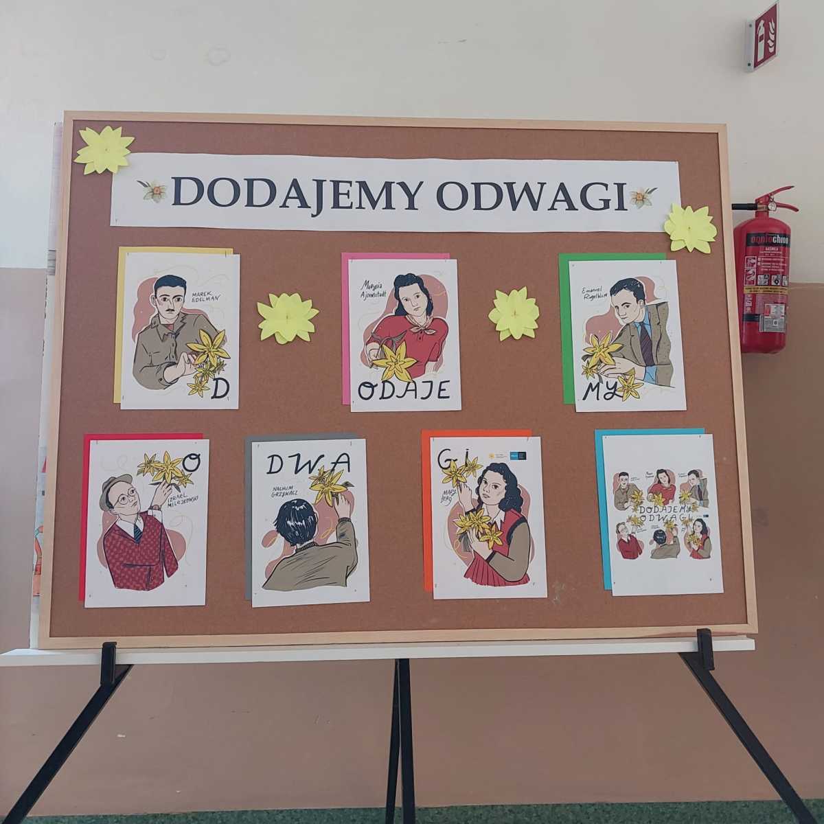 Uczniowie klasy I TG wzięli udział w akcji społeczno-edukacyjnej „Dodajemy odwagi. Łączy nas pamięć”, zorganizowanej z okazji 83. rocznicy wybuchu powstania w getcie warszawskim. Celem przedsięwzięcia było upamiętnienie bohaterów tamtych wydarzeń oraz przybliżenie młodzieży historii powstania.