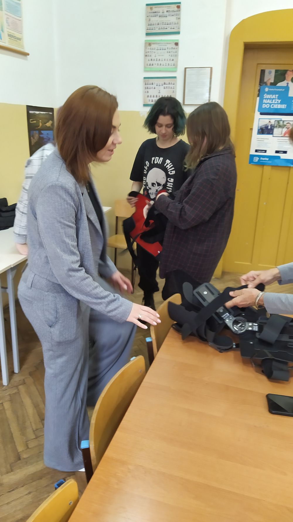 Warsztaty odbyły się z wykorzystaniem nowoczesnego sprzętu – Symulatora starości, w celu pokazania uczniom, jak funkcjonują osoby starsze (m.in. okulary, obciążniki, ograniczniki ruchomości stawów, rękawice zmniejszające precyzję ruchu itp.)
